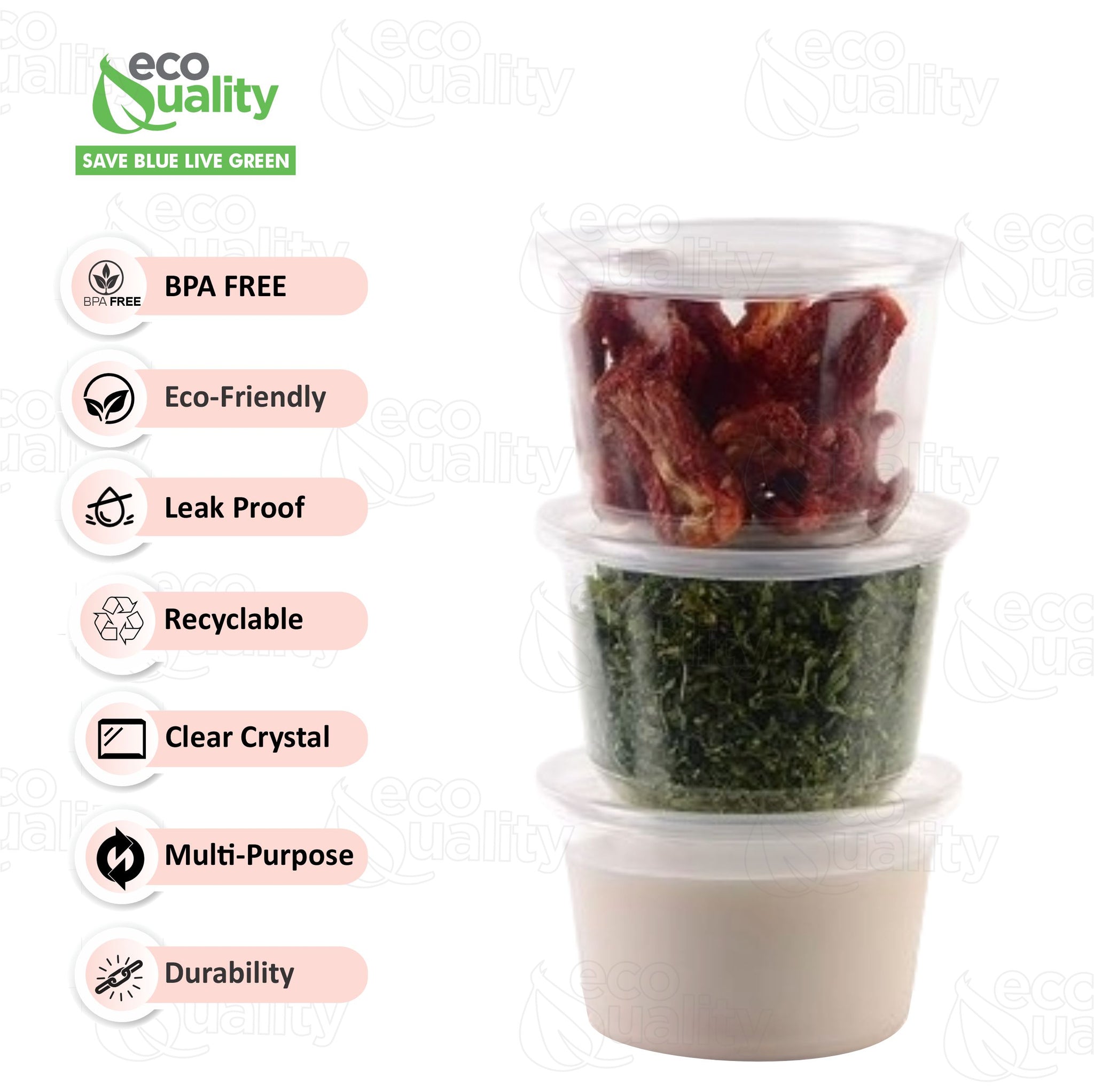 Round Plastic Deli Food Storage Containers with Lids Translucent Clear (8oz, 16oz, 32oz)