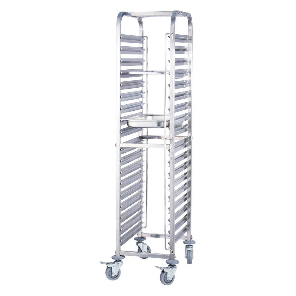 The Winco SRK-12 to SRK-36 Under-Counter Pan Rack offers a versatile and durable solution for storing and organizing full, half, and third-size steam table pans and food pans. Designed for efficient space utilization, this stainless steel rack is perfect for kitchens looking to optimize storage and ensure easy access to pans. The rack’s dual-ended locking bars and carefully welded channel ledges provide superior support while minimizing the risk of pans sliding out. Whether used in restaurants, cafeterias, or catering operations, this rack meets the needs of high-volume environments with its robust capacity and practical design.