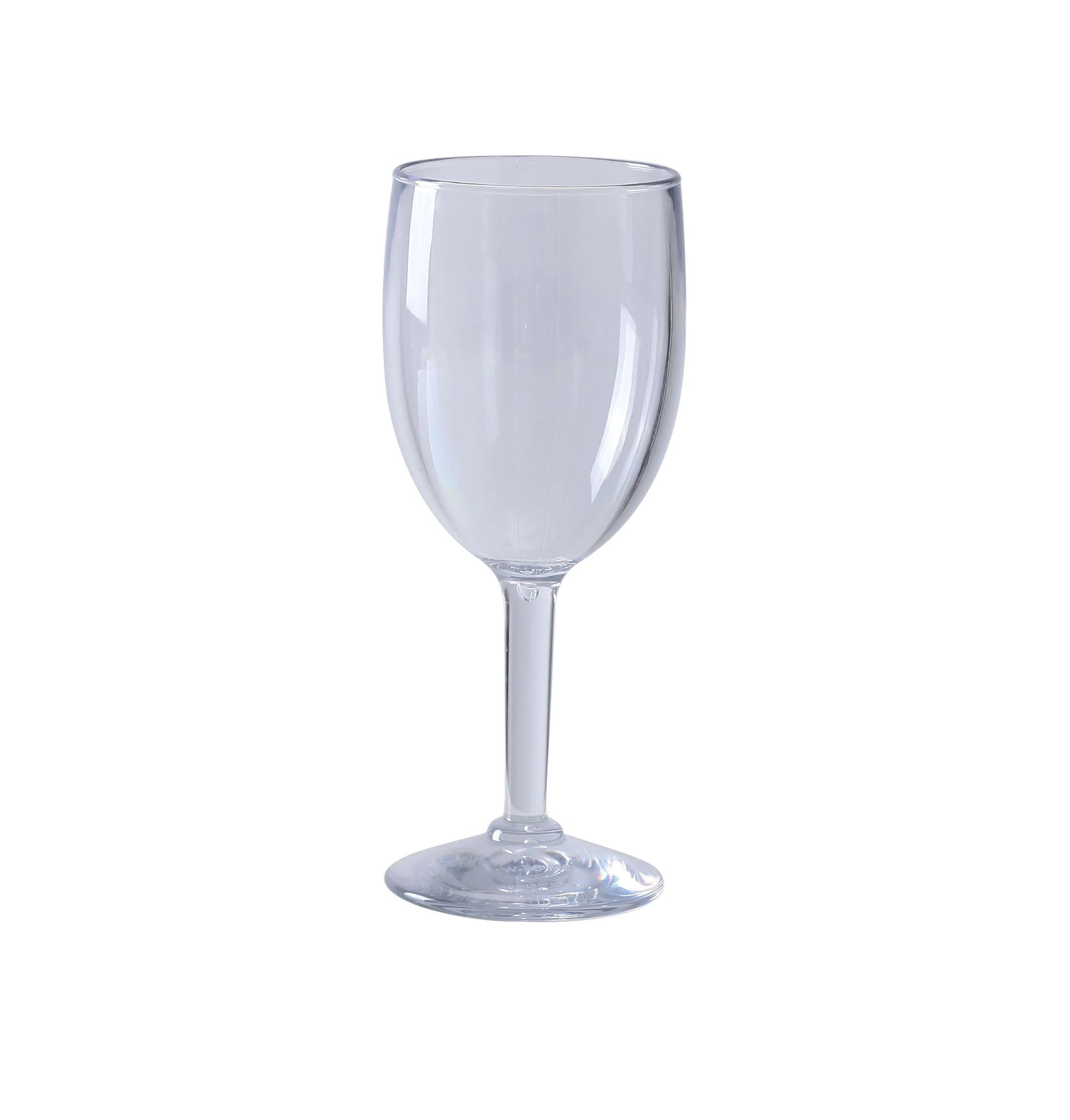 EcoQuality Wine Glass SM-08-WI is a stylish and durable choice for serving wine in any hospitality setting. Made from high-quality SAN plastic, this 8 oz glass offers the clarity of traditional glassware while being impact-resistant for high-traffic environments. With a sleek 2.75-inch diameter and a 7-inch height, it provides an elegant presentation suitable for restaurants, bars, and catering events. Combining sophistication with practicality, this wine glass enhances the drinking experience while ensuring durability and ease of use.
