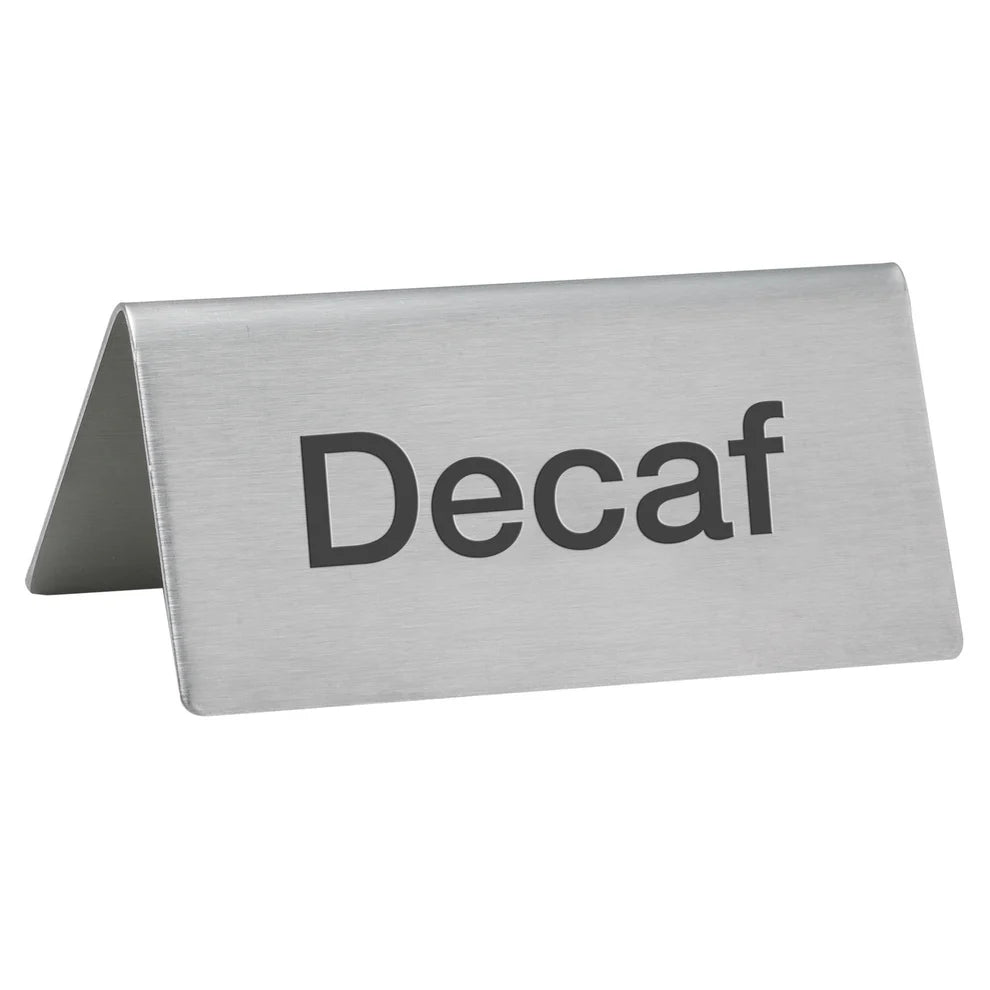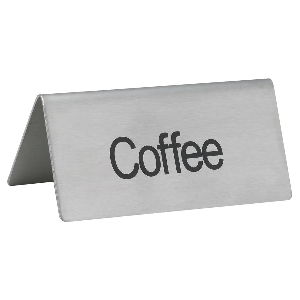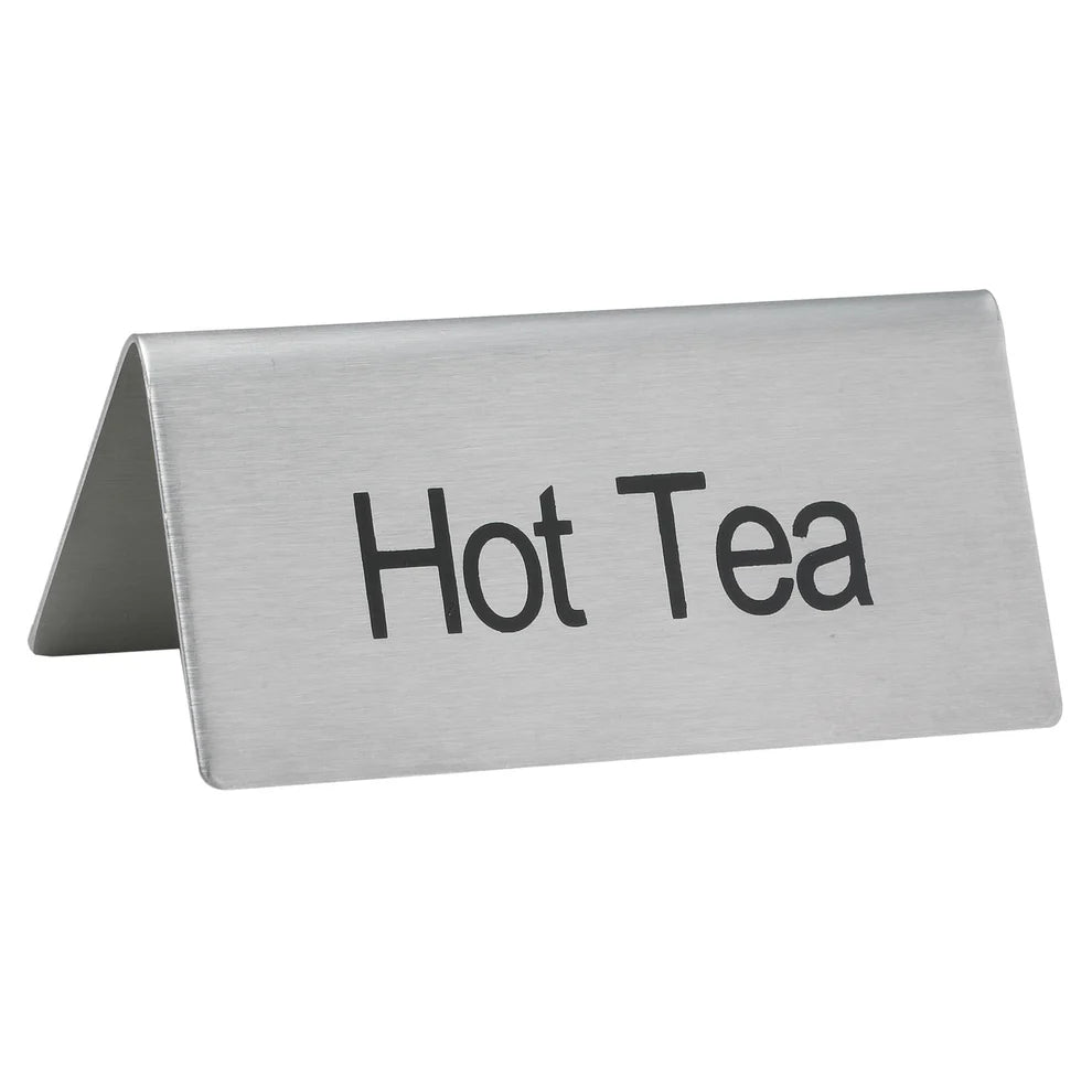 Enhance your restaurant kitchen, buffet stations, or catering services with Winco's Stainless Steel Blank Tent Sign. These versatile tent signs come in various options including Hot Tea, Decaf, Coffee, Hot Water, and Iced Tea, designed to efficiently organize your beverage stations. Crafted with oversized black letters on durable stainless steel, these signs ensure easy visibility and durability in bustling environments.
