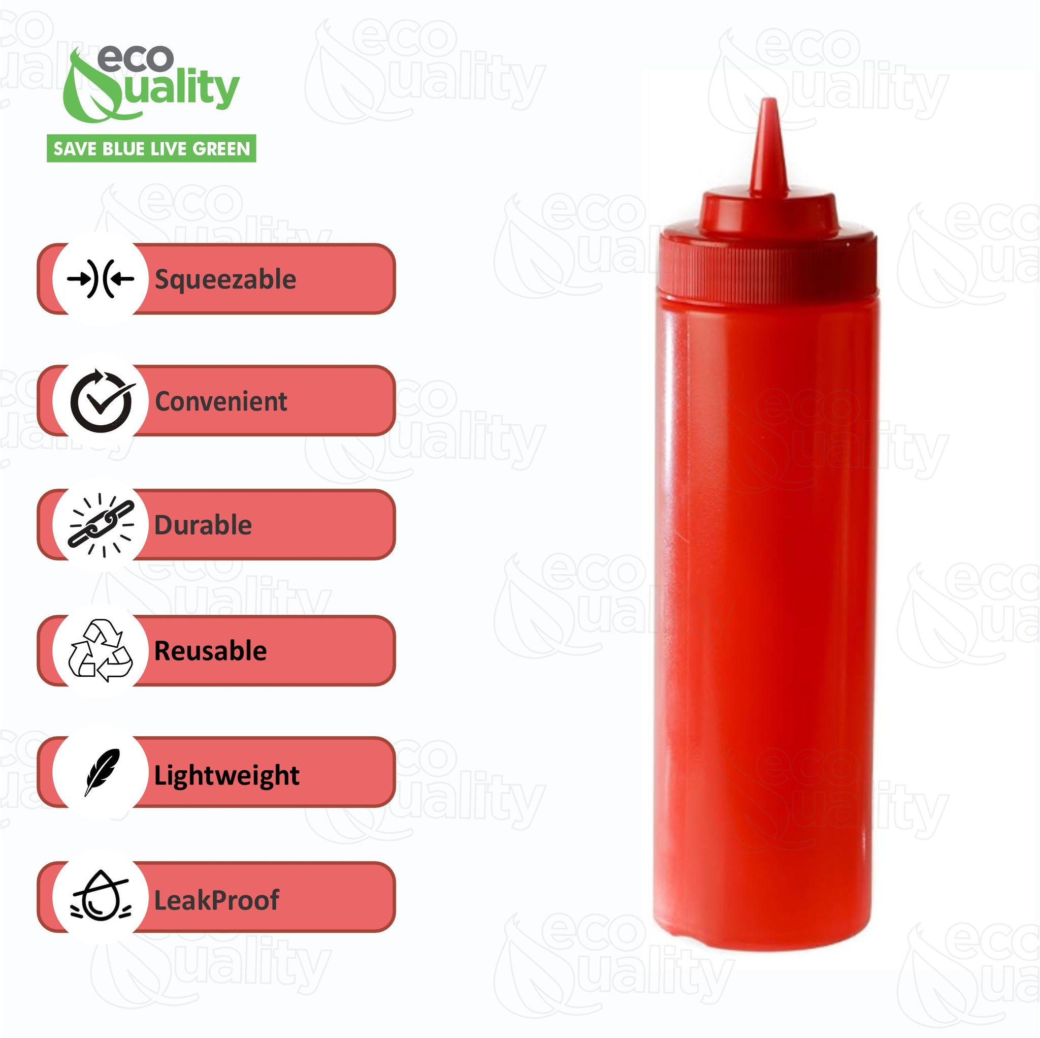 The bold red color enables quick color-coded identification, helping prevent cross-contamination between different condiments. The precision nozzle provides smooth and controlled dispensing, perfect for ketchup, sauces, dressings, or oils. This bottle is BPA-free, dishwasher-safe, and designed for long-lasting commercial use. Ideal for restaurants, food trucks, catering services, and concession stands, it improves workflow and organization.