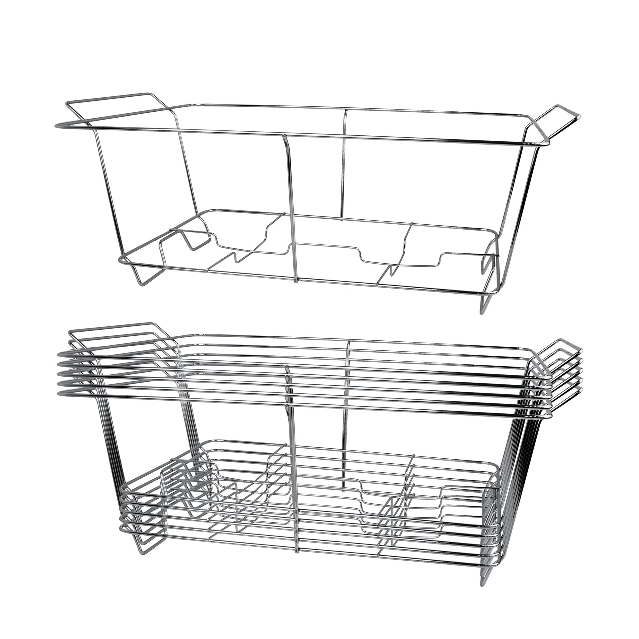 CATERING SUPPLIES: Whether you're a hosting a personal even or you're a professional caterer, this chafing wire rack buffer stand is an essential tool to ensure a successful and seamless food service event. Impress all of your guests with our buffet setup that helps keep food warm, elevated and makes for an effortless serving process.