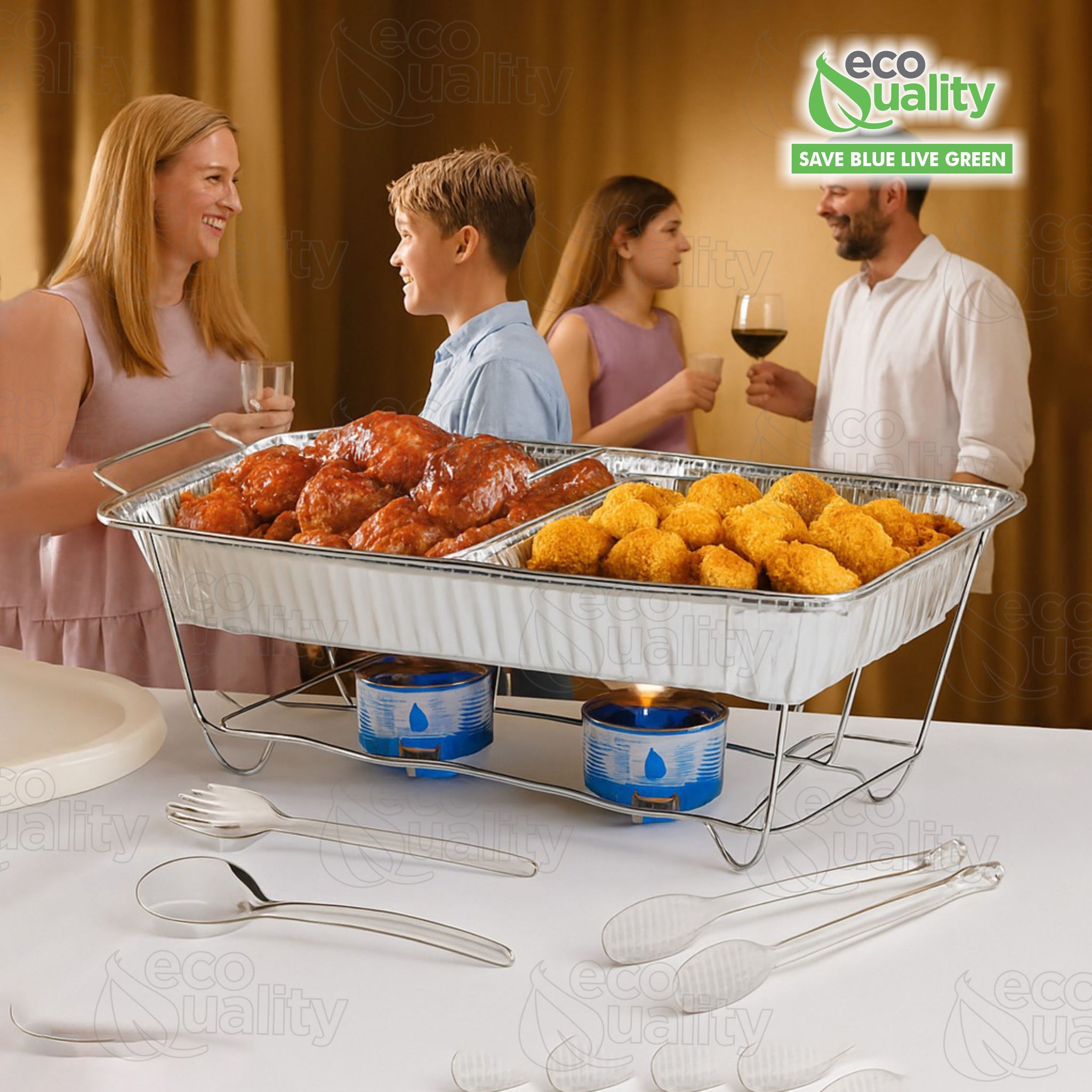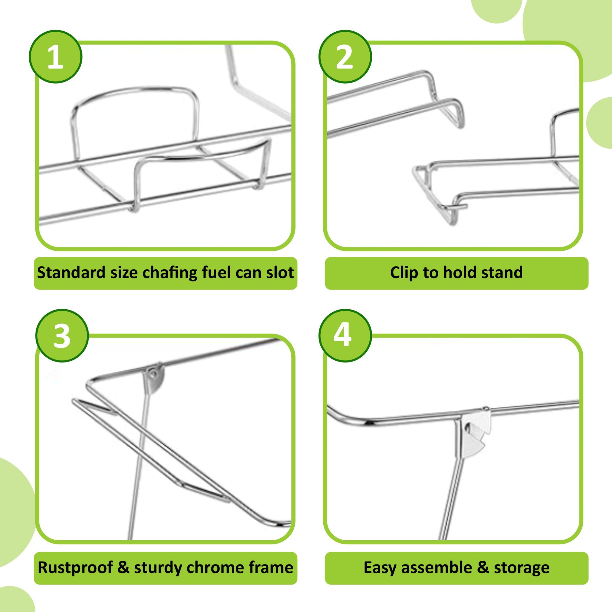 EASY SETUP AND CLEAN UP: With these EcoQuality wire chafing dish racks setting up your next catering event or gathering with ease. With its user friendly foldable design simply assemble the rack and place your food on top with the warmers on the bottom. When your event is over simply fold the rack and store it for future use!