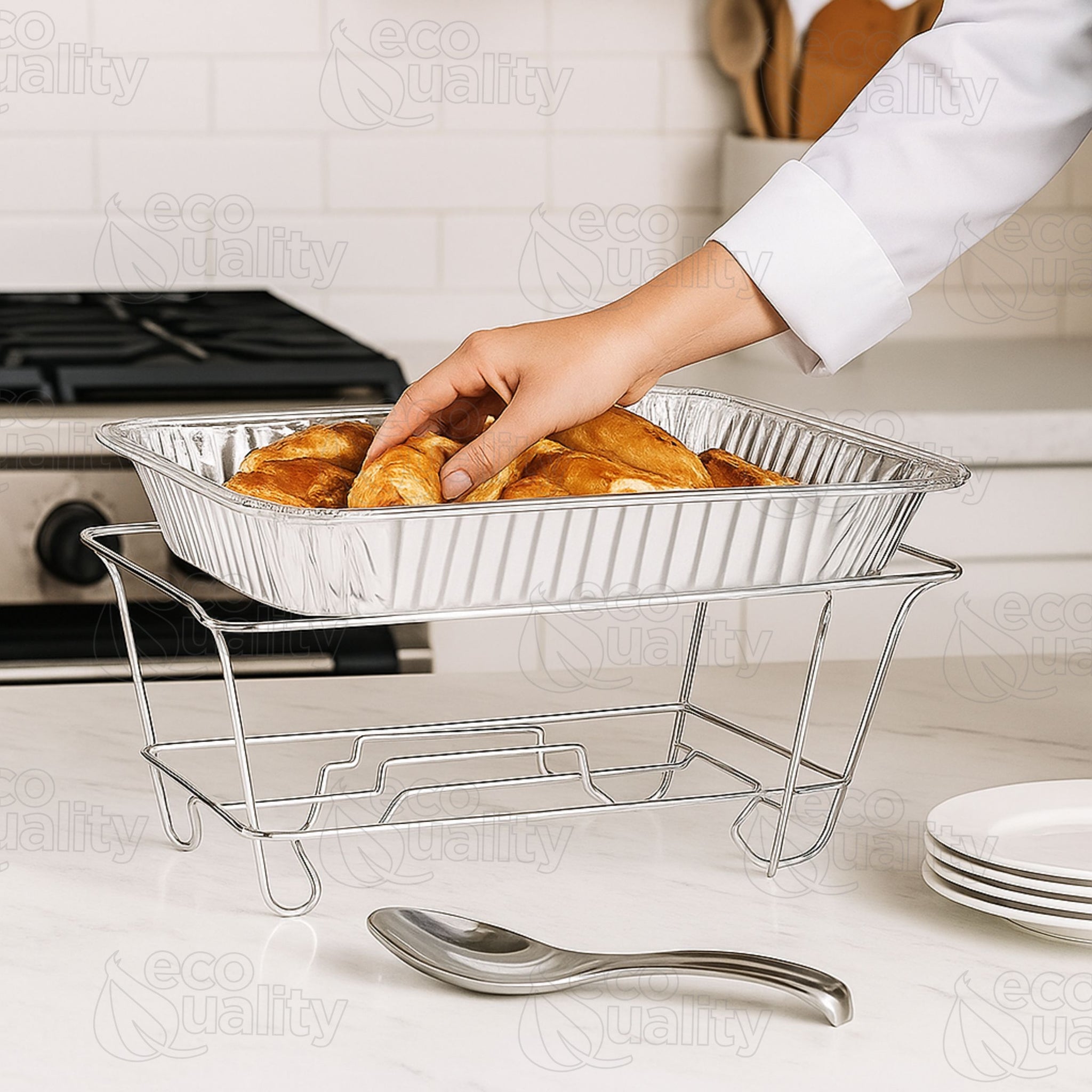 PROFESSIONAL WIRE RACK: Upgrade your next even with EcoQuality chrome chafing wire rack buffet stands for full size serving trays. Designed with a chrome frame, these full-size rack chafer stands. Great for weddings, birthday parties, at home catering and much more. Simply fold up the wire rack and use at your next event!