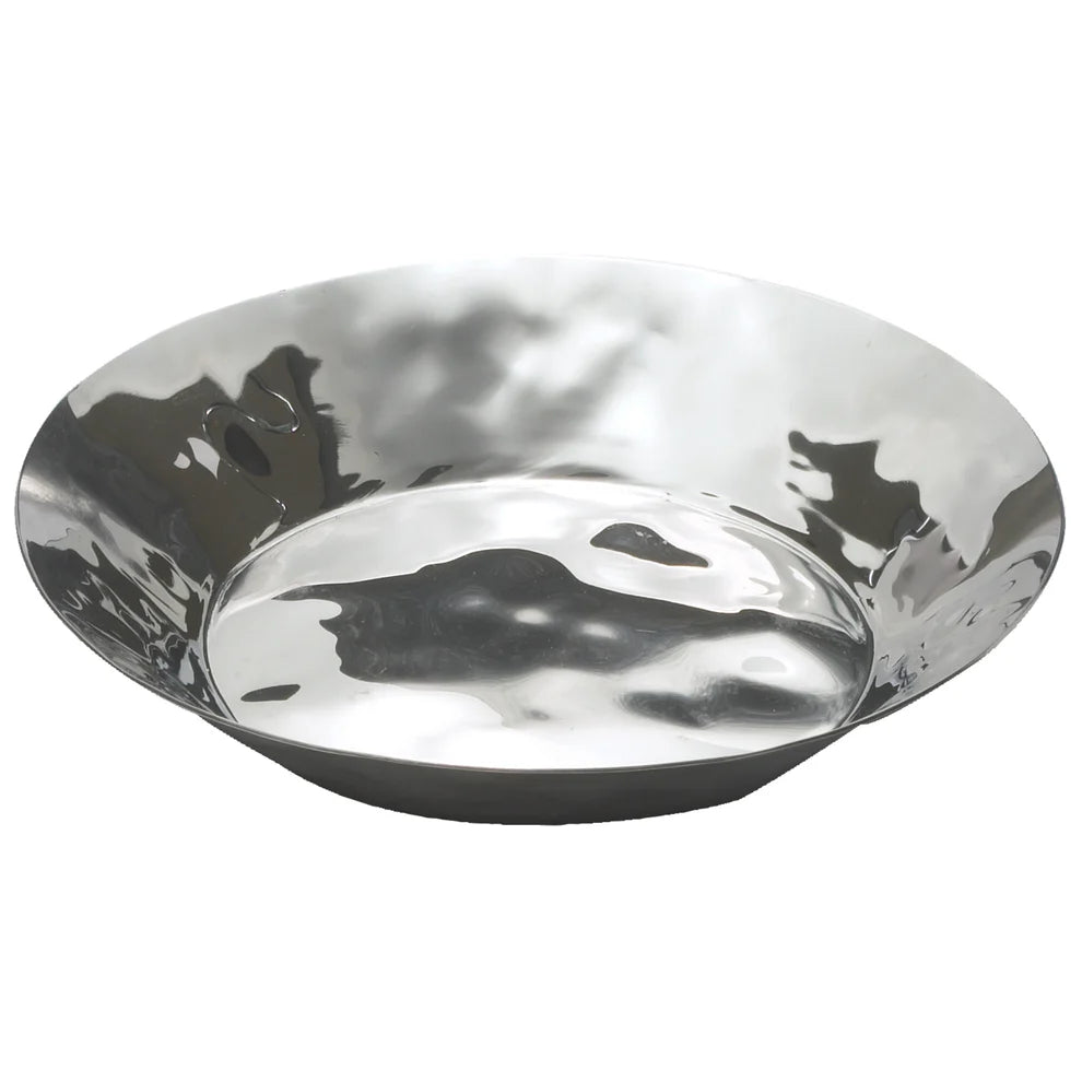 The HPR-8 SS 8-7/8" x 1-5/8" Extra Heavy Stainless Steel Round Premium Display Tray is a stunning and durable piece designed to elevate food presentations in buffets, catering setups, and upscale dining displays. Crafted from high-quality 18/8 stainless steel, this tray features a distinctive glossy ripple surface with a mirror finish that beautifully reflects light, adding sophistication to any table or countertop arrangement. Ideal for showcasing appetizers, desserts, or signature dishes, it combines both style and strength for professional-grade performance.