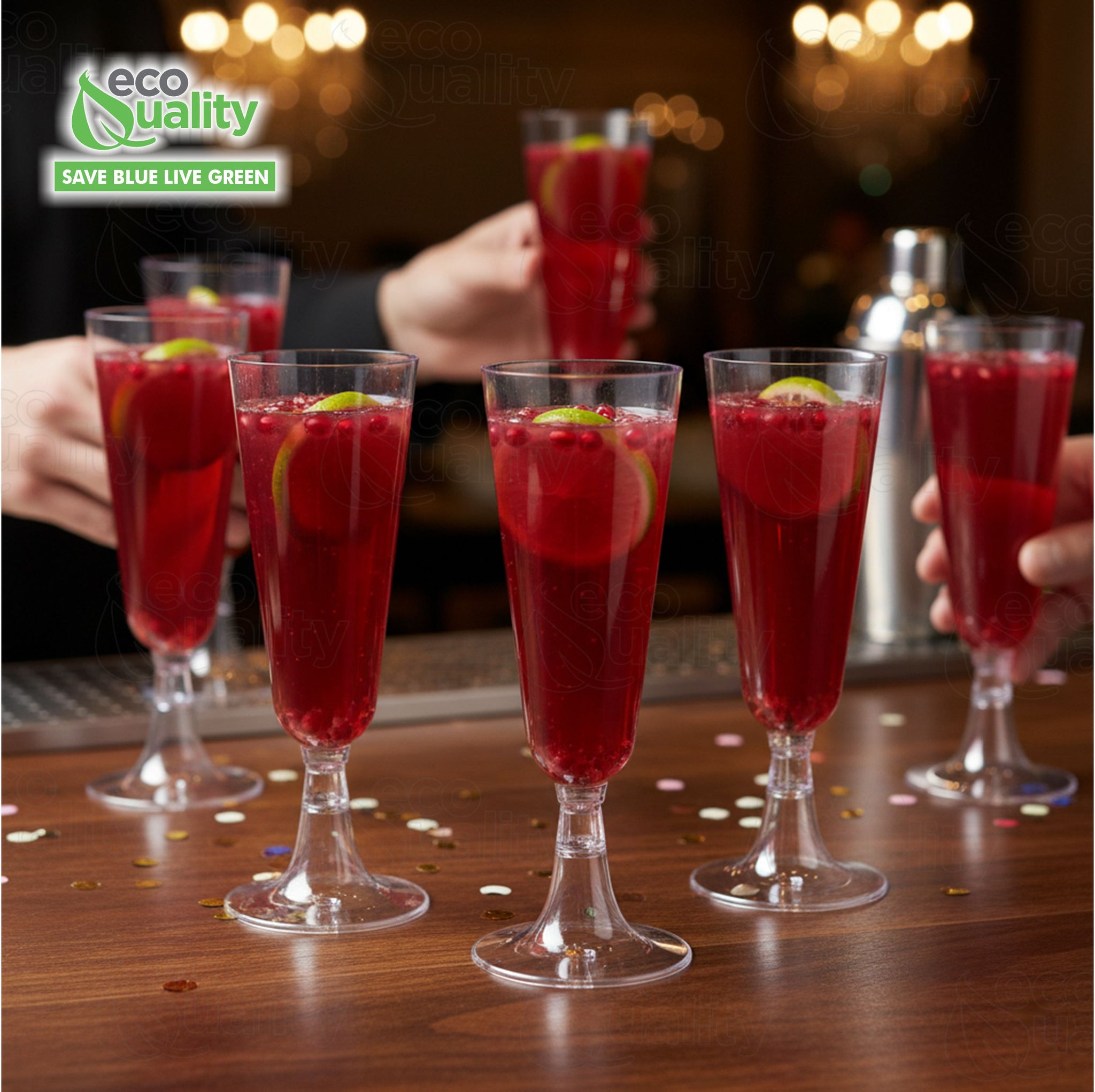 Celebrate in style with our Elegant 5oz Champagne Flute Stemware. Perfect for weddings, parties, and upscale events, this disposable stemware features a sleek, crystal-clear design that mimics real glass. The sturdy stem and comfortable hold make it ideal for serving champagne, prosecco, or sparkling wine. Its lightweight and durable construction ensures easy handling while adding an air of sophistication to any celebration. Enjoy effortless cleanup without compromising on elegance—make every toast unforgettable with these stylish champagne flutes.