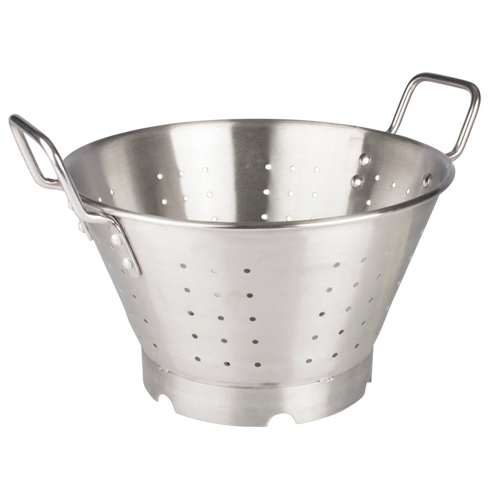 The Winco SLO-11/16 is a premium 11/16-quart stainless steel colander, designed to withstand the toughest kitchen environments. Made from extra heavy-duty stainless steel, this colander is ideal for draining large quantities of pasta, vegetables, and fruits, or rinsing meats. Its tapered, high-wall cone shape ensures efficient water drainage while keeping food securely in place. The sturdy design, combined with convenient side handles and a stable base, makes it easy to transport and perfect for fast-paced commercial kitchens or heavy-duty home use.