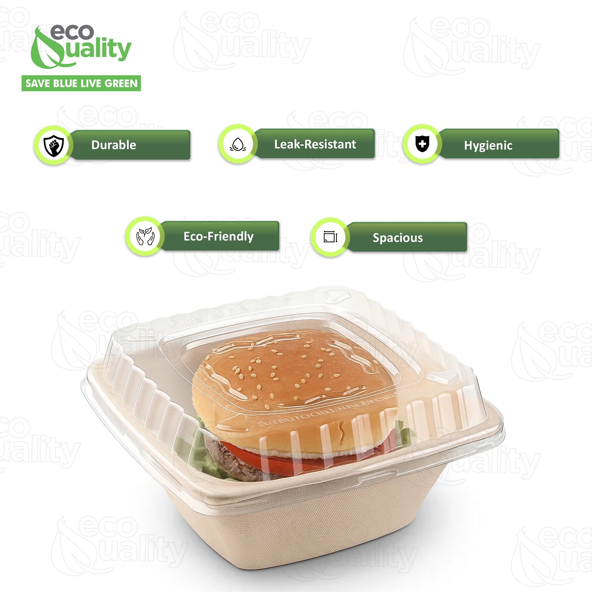 Make a statement with your guests on your environmental consciousness, this EcoQuality bagasse product can be decomposed within a matter of months in a certified facility, leaving no footprints behind. This product is designed wider to avoid spilling and provides a guilt-free convenient disposable solution in a natural Kraft color. Perfect party eco containers for lunch, dinner or appetizers. UNBLEACHED, MICROWAVABLE, HOT AND COLD, SOLID AND LIQUID FOOD SAFE!