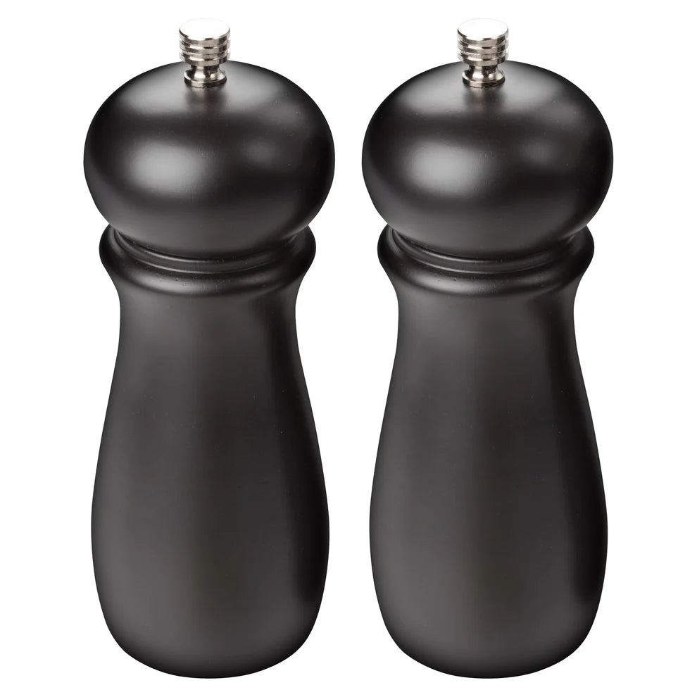 Introducing the Winco SP-624 Pepper Mills, a versatile set designed for professional kitchen environments, buffet stations, and catering services. This set comes with two pepper mills and two extra knobs, ensuring continuous functionality during busy service hours. Crafted with a sleek rubberwood black matte finish, these pepper mills not only elevate the presentation of your dishes but also offer durability for long-term use. Measuring 2-1/4" in diameter and 6" in height, they provide ample capacity for your pepper grinding needs. Elevate your culinary experience with the Winco SP-624 Pepper Mills, a reliable companion for any food service establishment.