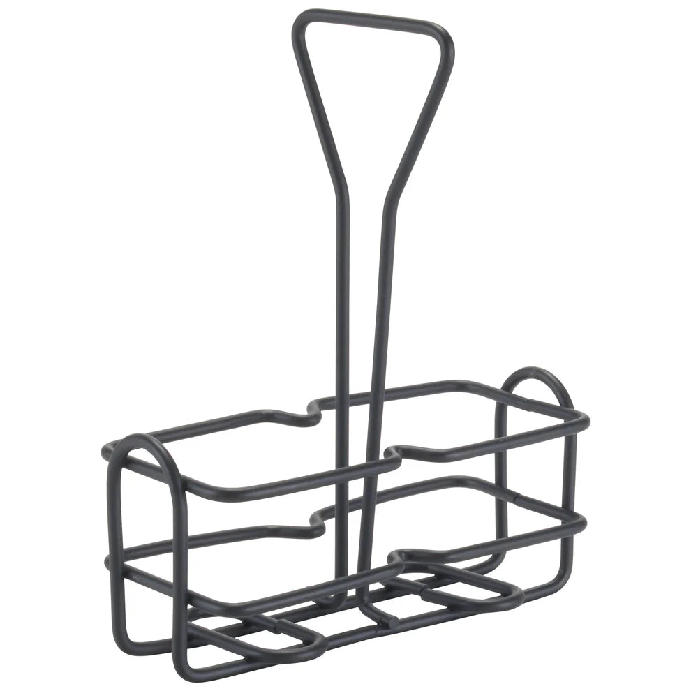 Introducing the Winco WH-3-3K Cruet Rack, a stylish and functional addition to your kitchen or dining space. Crafted with meticulous attention to detail, this rack combines the sleek sophistication of chrome plating with the modern elegance of black coating, ensuring durability and aesthetic appeal. Designed to hold 6oz oil and vinegar cruets, it offers convenient storage while adding a touch of class to your tabletop.