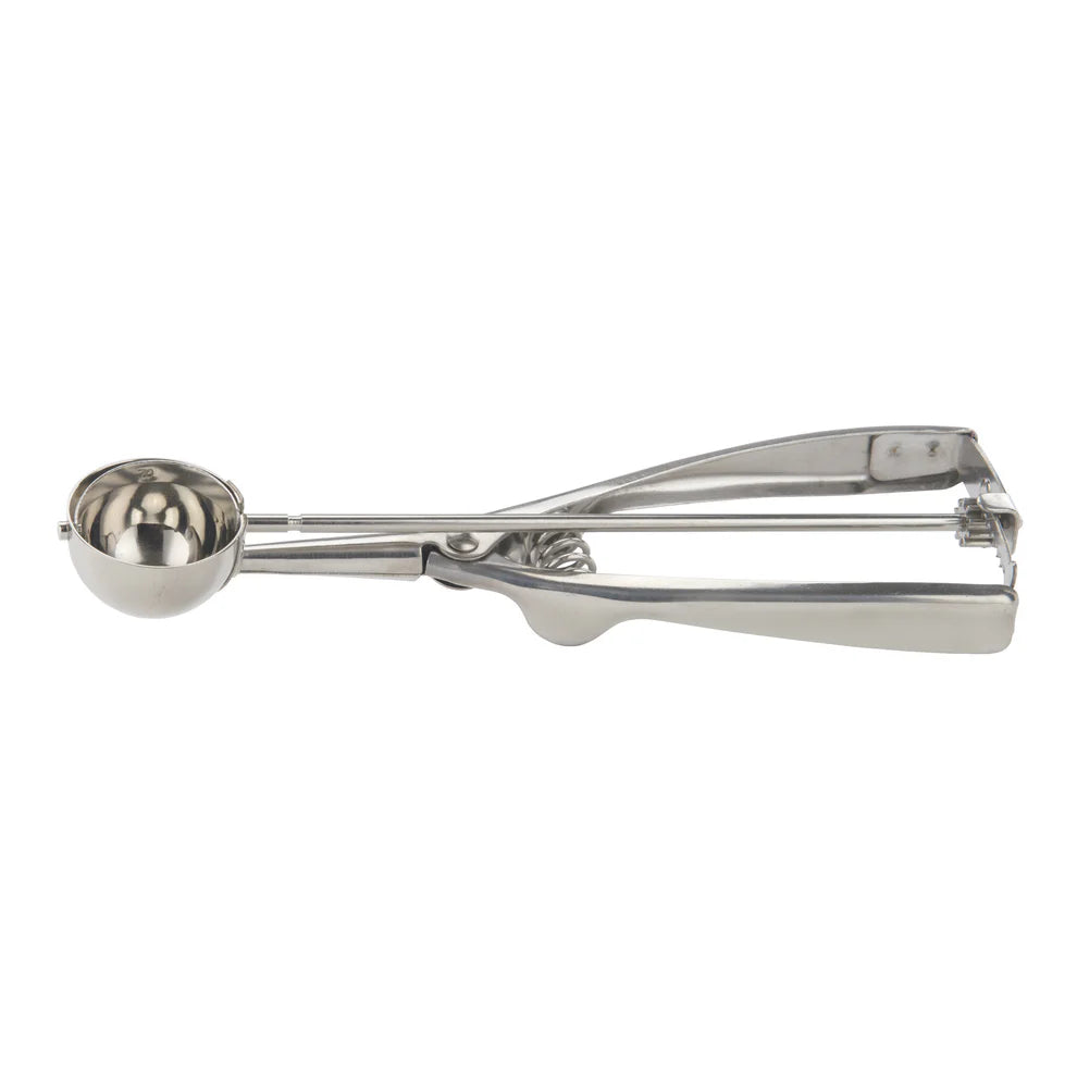 - The design ensures that the disher is operated with a full-hand squeeze, preventing thumb fatigue and making it comfortable to use for extended periods.