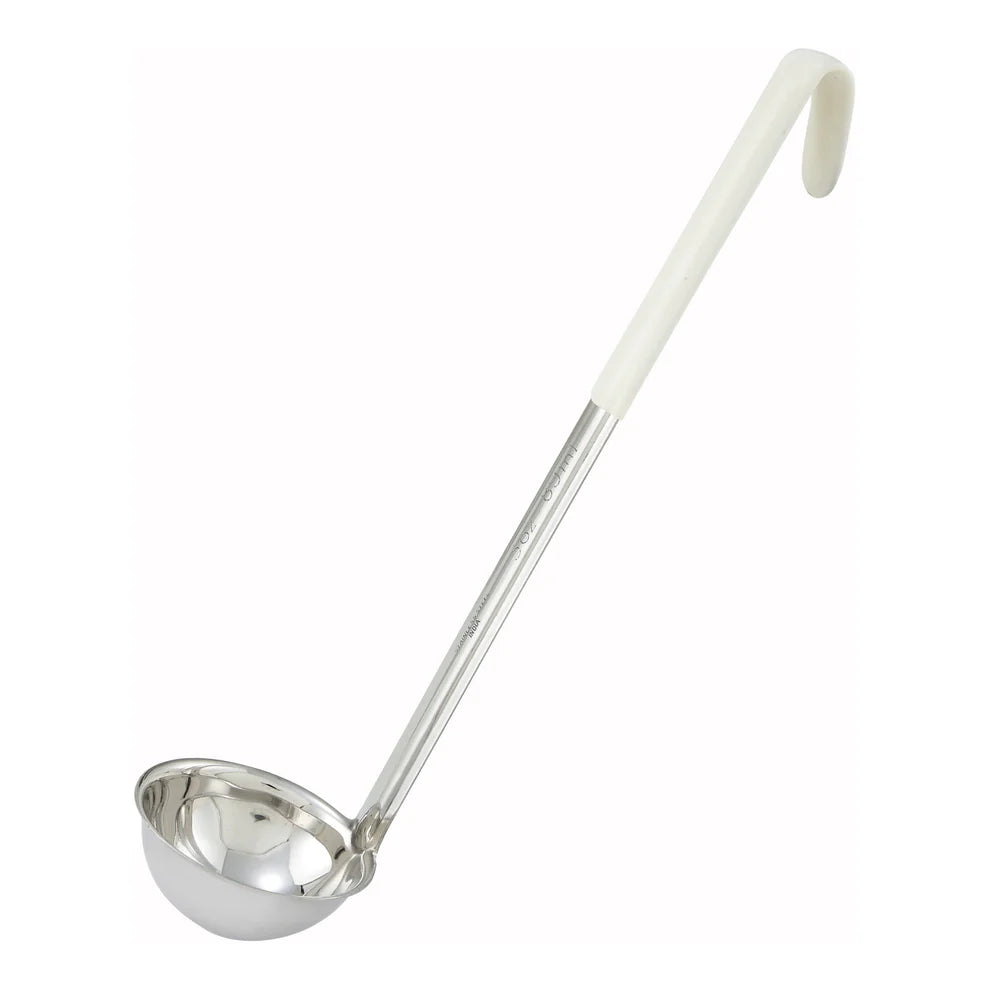 The Winco LDC Ladles is a versatile and essential tool for any professional kitchen, designed to meet the demanding needs of commercial food service environments. Available in sizes ranging from 1/2oz to 8oz, these ladles are ideal for precise portion control, ensuring consistent serving sizes whether you're dishing out soups, gravies, sauces, or dressings. The one-piece stainless steel construction ensures durability and longevity, making these ladles perfect for heavy-duty use in buffets, salad bars, catered events, and more. Additionally, the color-coded handles offer quick and easy identification of sizes, streamlining service during busy operations. The thoughtfully designed curved tip not only provides a comfortable grip but also allows the ladle to be hung conveniently when not in use, saving space and keeping your kitchen organized.