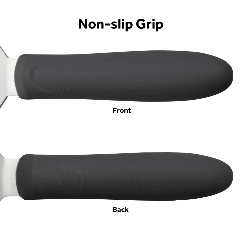 The Winco TKP-50/TWP-50 Black/White PP Handle Grill Spatula with Offset is a professional-grade tool, perfect for flipping burgers, steaks, and other grilled items with ease. Designed with an offset blade for better control, this spatula is ideal for both home cooks and chefs working in high-demand kitchens. Built from durable stainless steel with a satin finish, it combines efficiency and style. The ergonomic handle ensures a comfortable, non-slip grip, reducing hand fatigue during long hours of use. This spatula is dishwasher safe for easy cleaning and NSF listed for added safety assurance, making it an excellent addition to any kitchen.