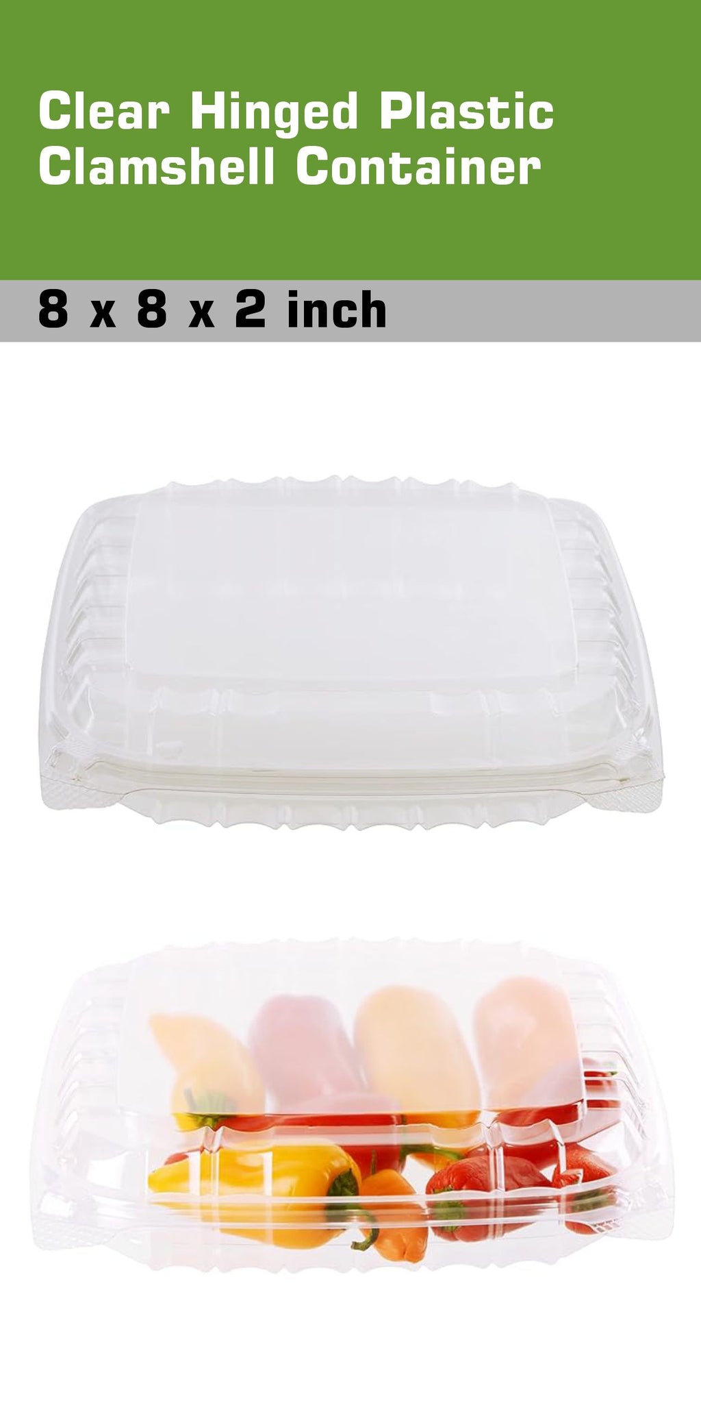 • BEST SIZE L 8 5/16" x W 8 5/16" x H 2" - Our 1 Compartment clear square disposable takeout containers with hinged lid are amazing for food industry. Use them as a clear cake container, salad container , pastry container and takeout