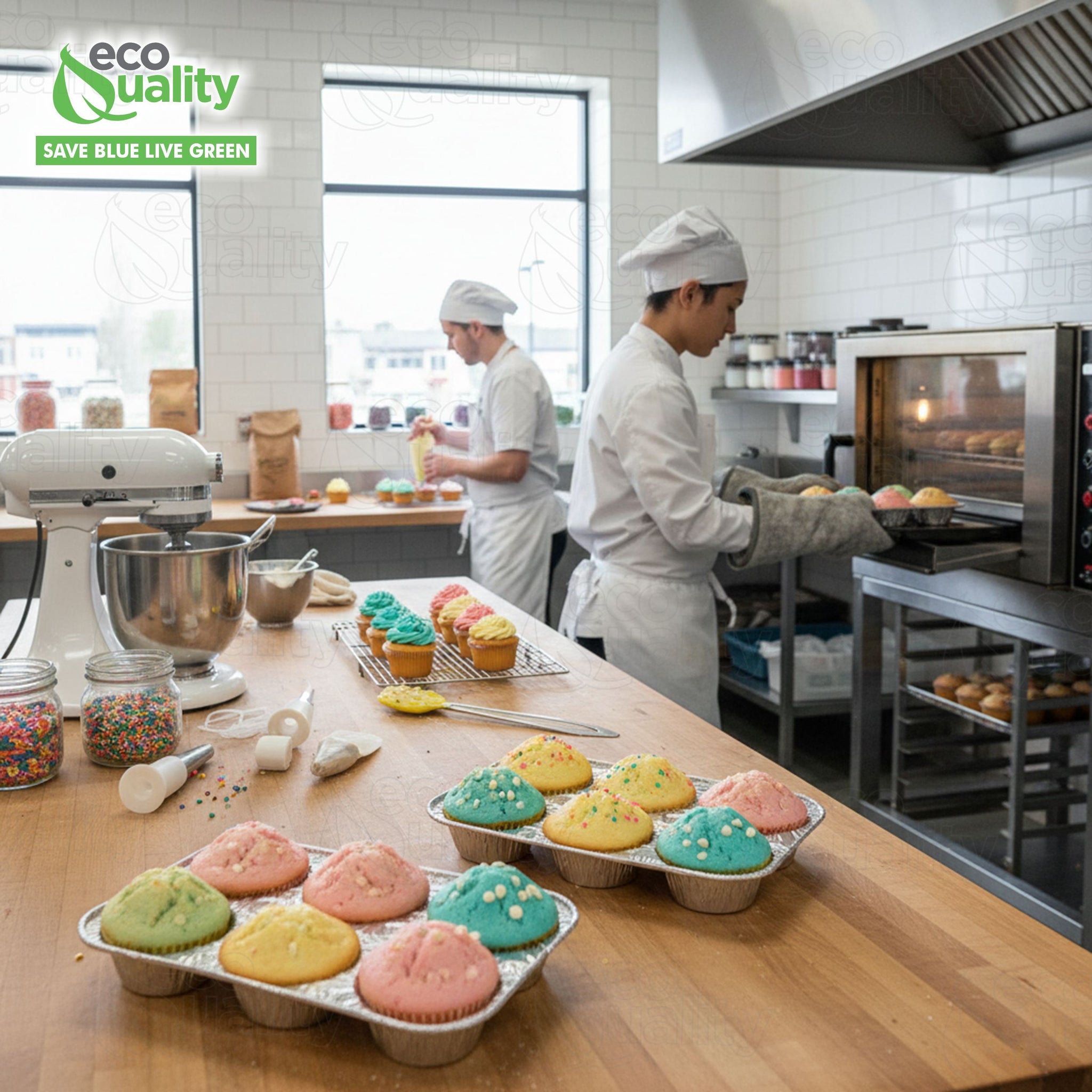 - QUALITY: EcoQuality Aluminum Cupcake Pans are made out of High Quality Gauge Recycled Aluminum Material. These pans are Reusable, Recyclable and Disposable!