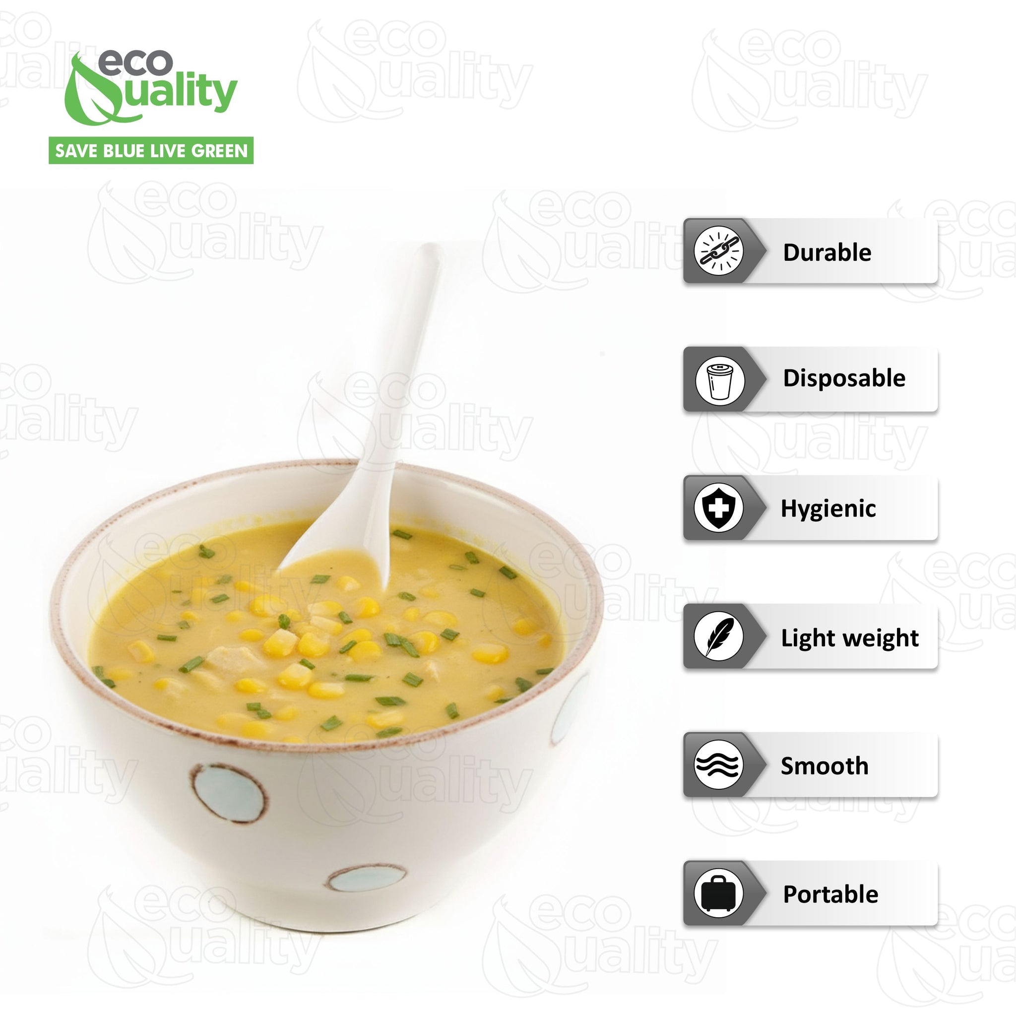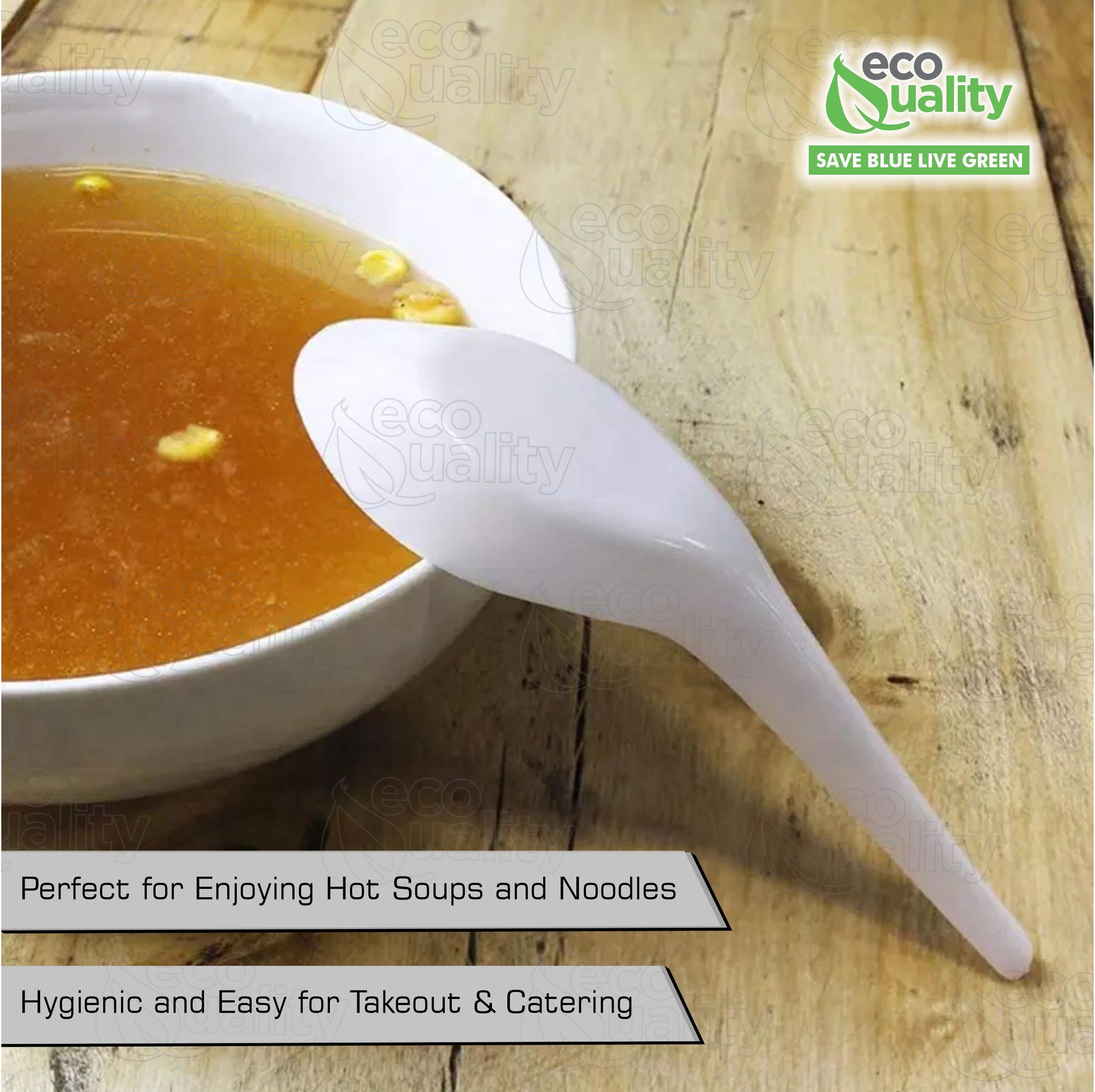 - INCLUDES: Comes with White Plastic Disposable Asian Soup Spoons. Japanese / Chinese Soup Spoons