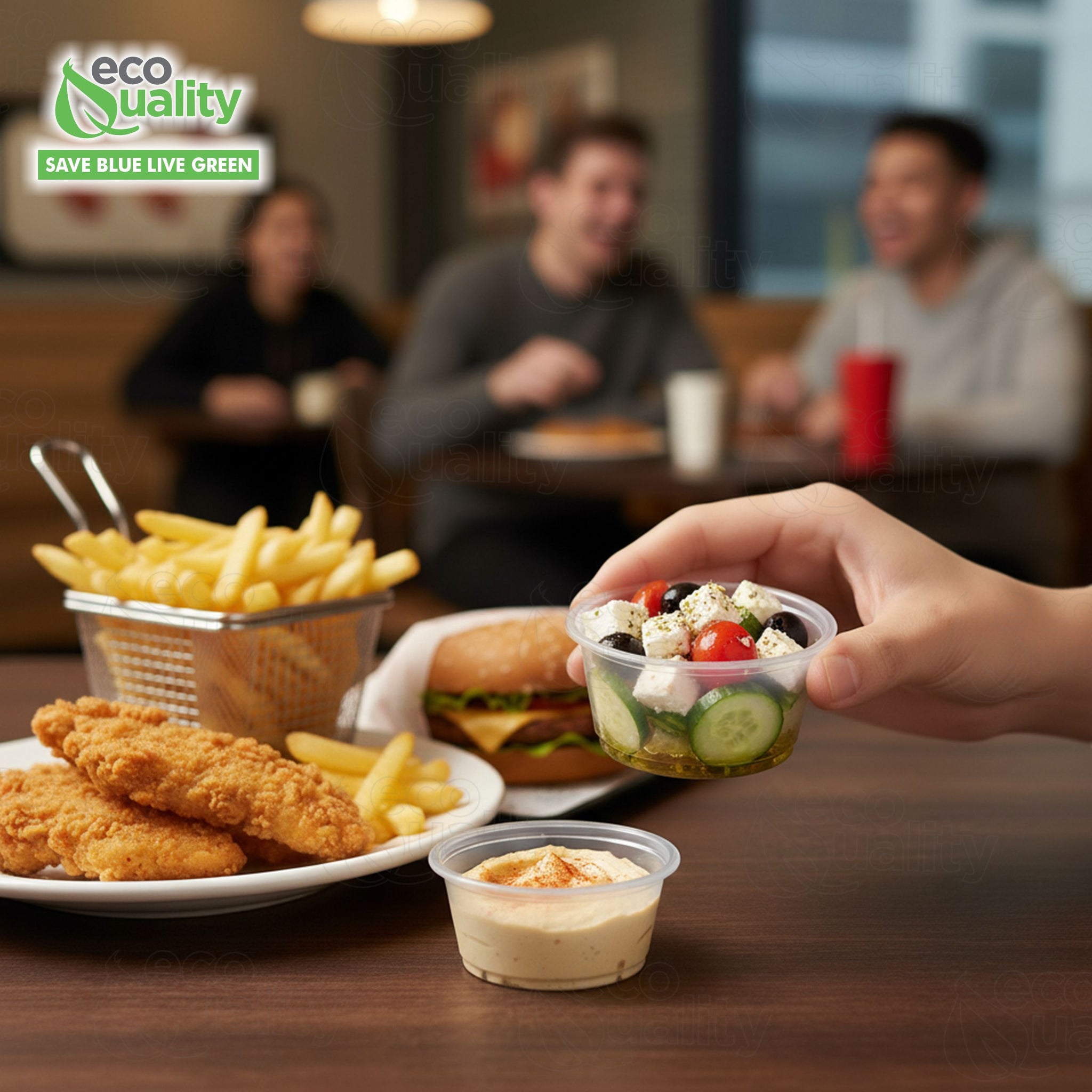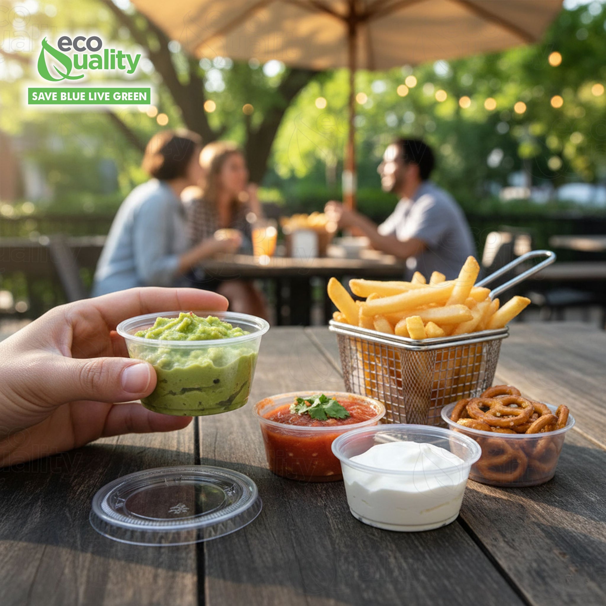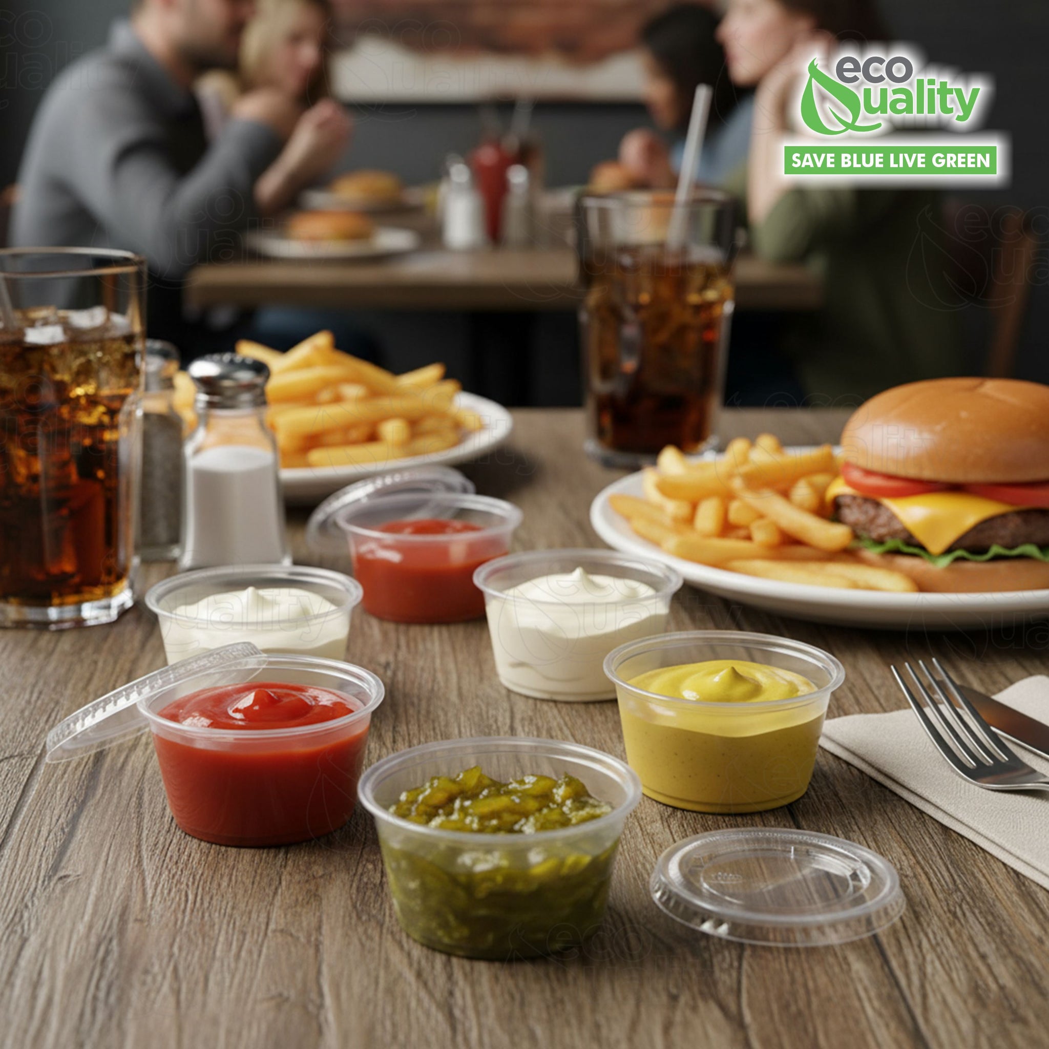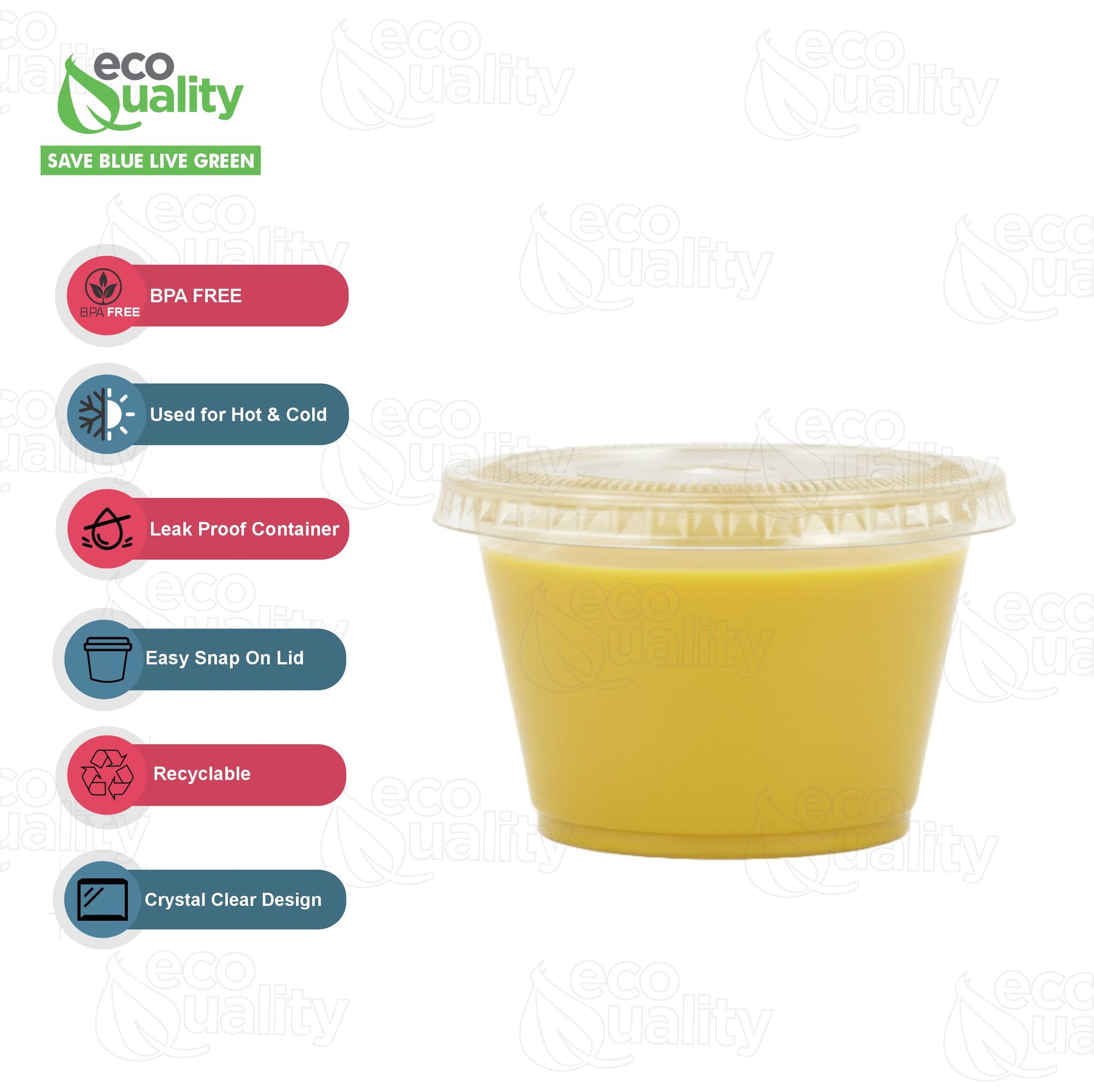 This cup is the perfect choice for providing customers with everything from ketchup, food samples, cosmetics, on the go. Now with secure lid, its stackable for easy storing and transport. This cup is made to help control portion sizes of your condiments, minimizing waste and saving on costs. It is great for use in delis, restaurants, and cafes. Plus, its eco-friendly design will help your establishment reduce its carbon footprint while retaining the convenience of single-serve use.