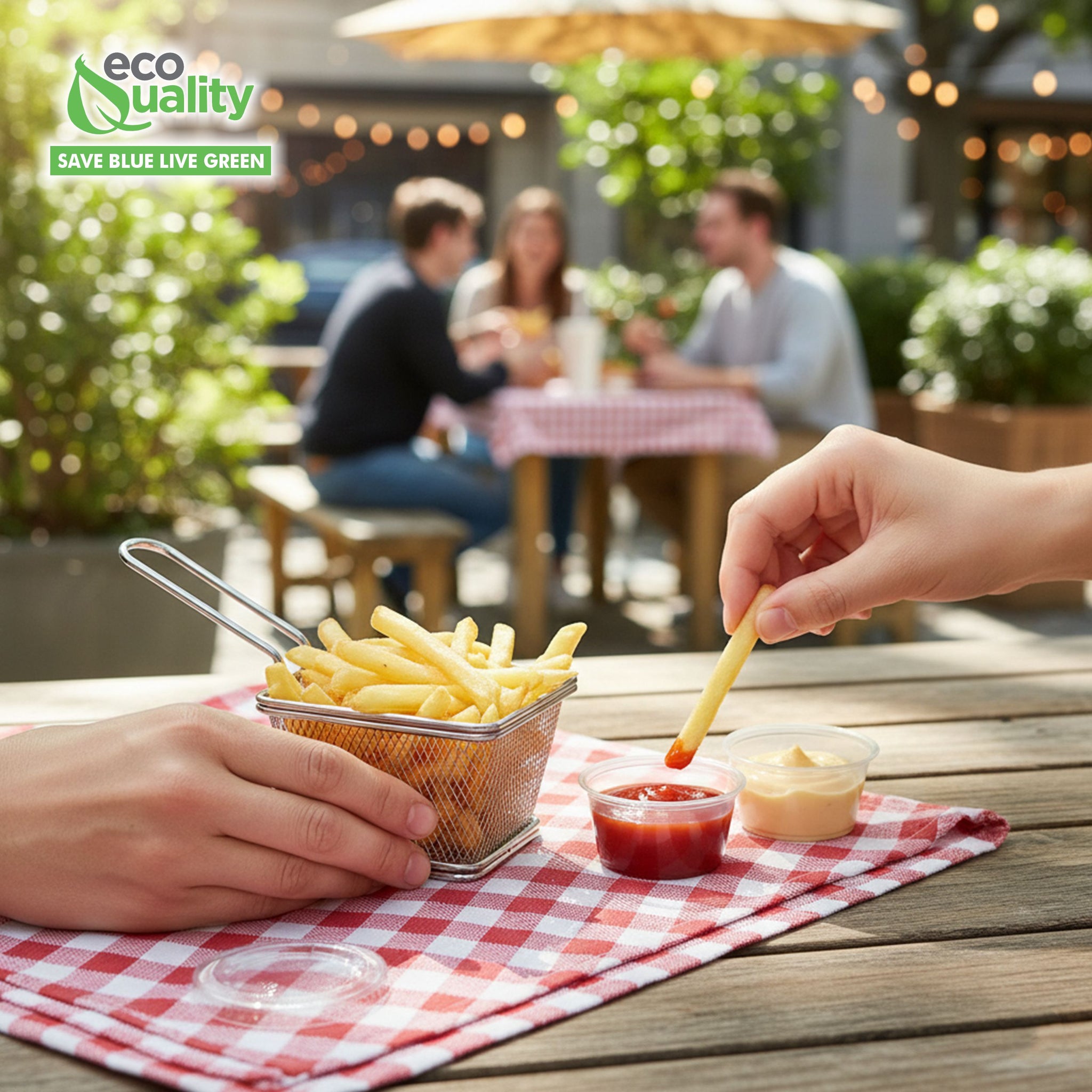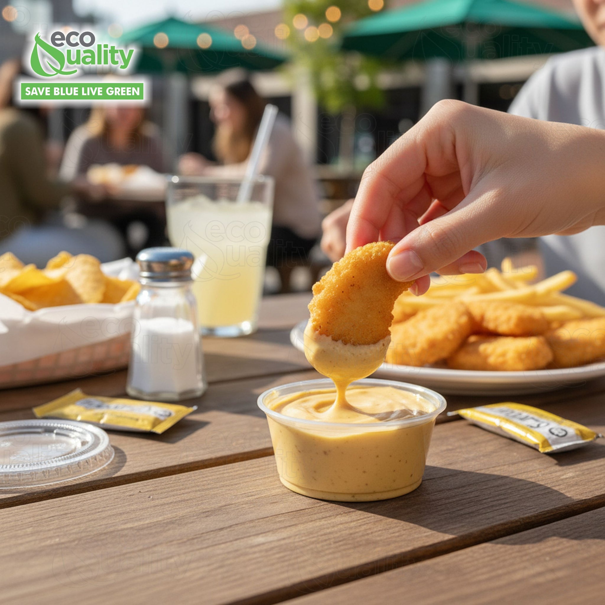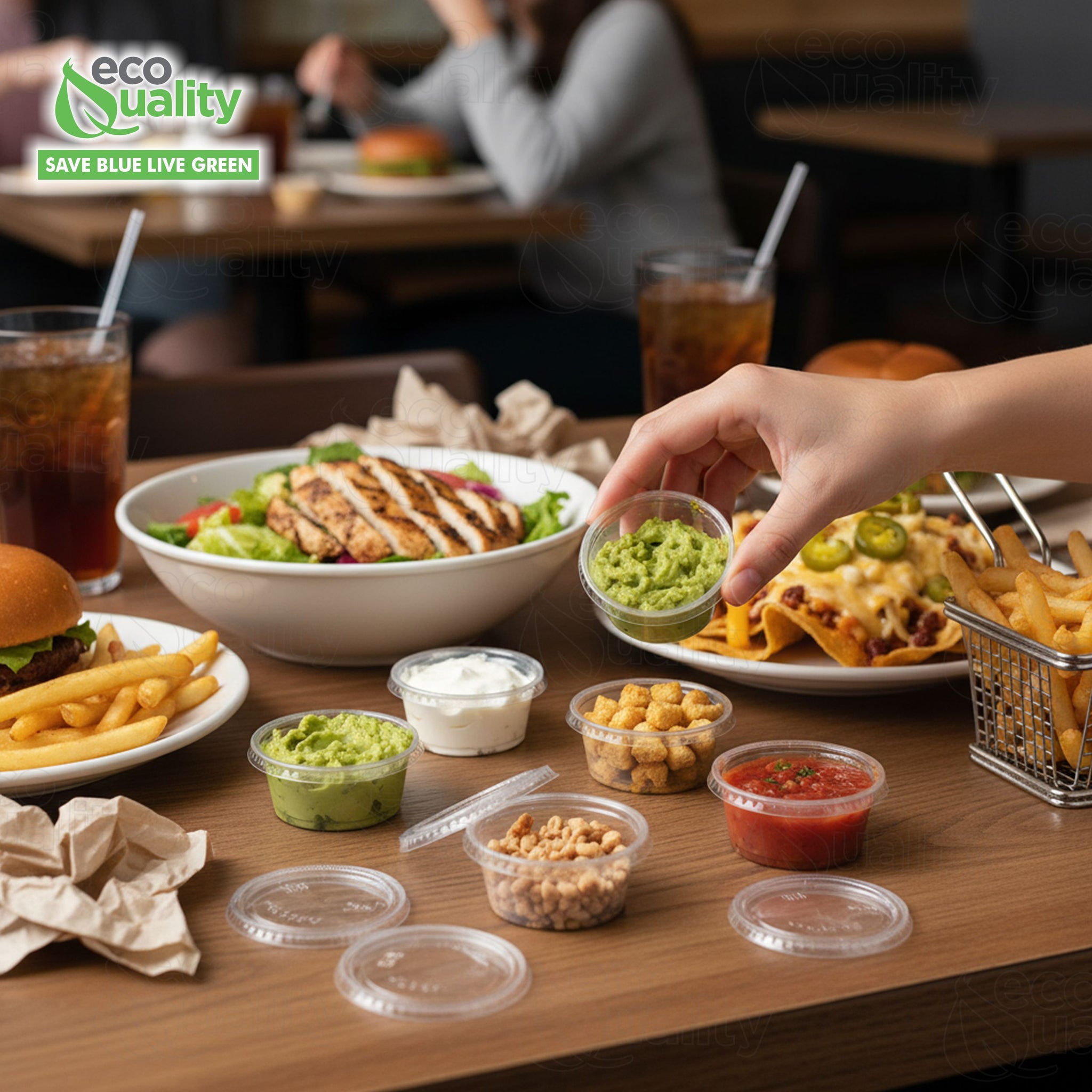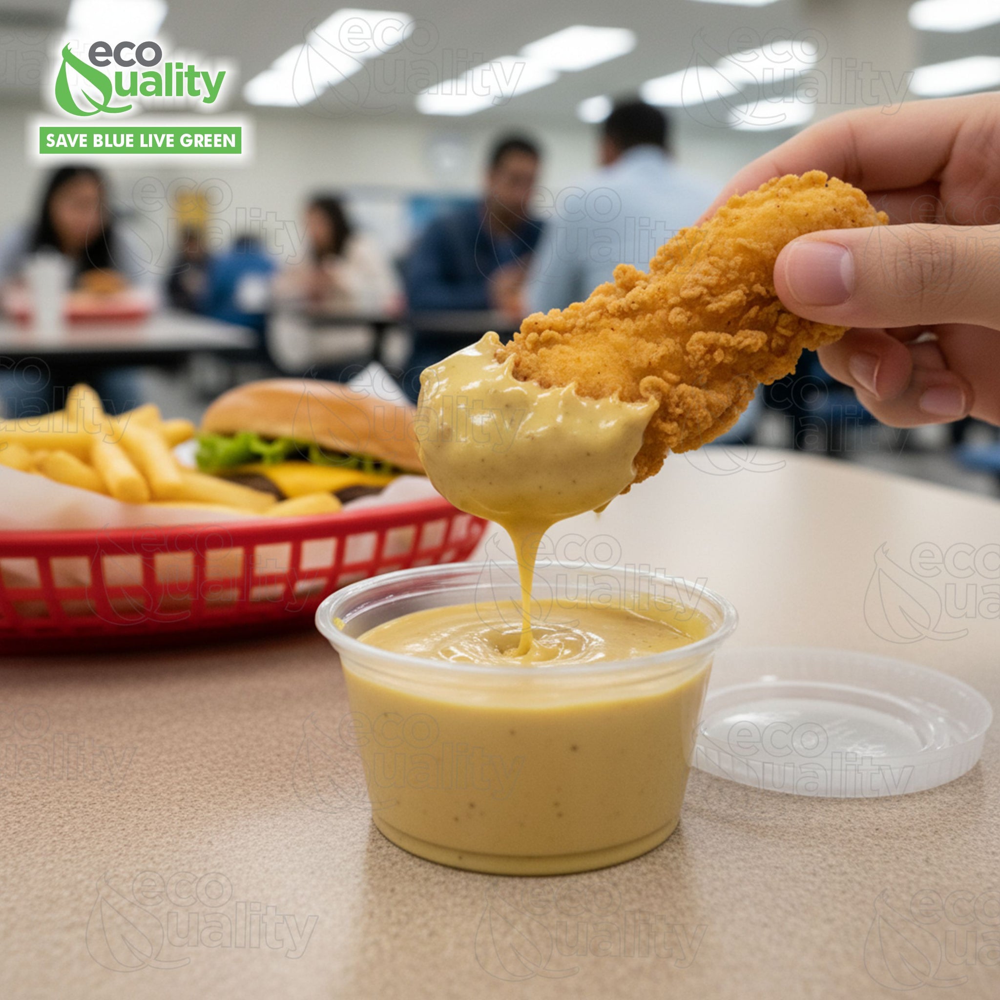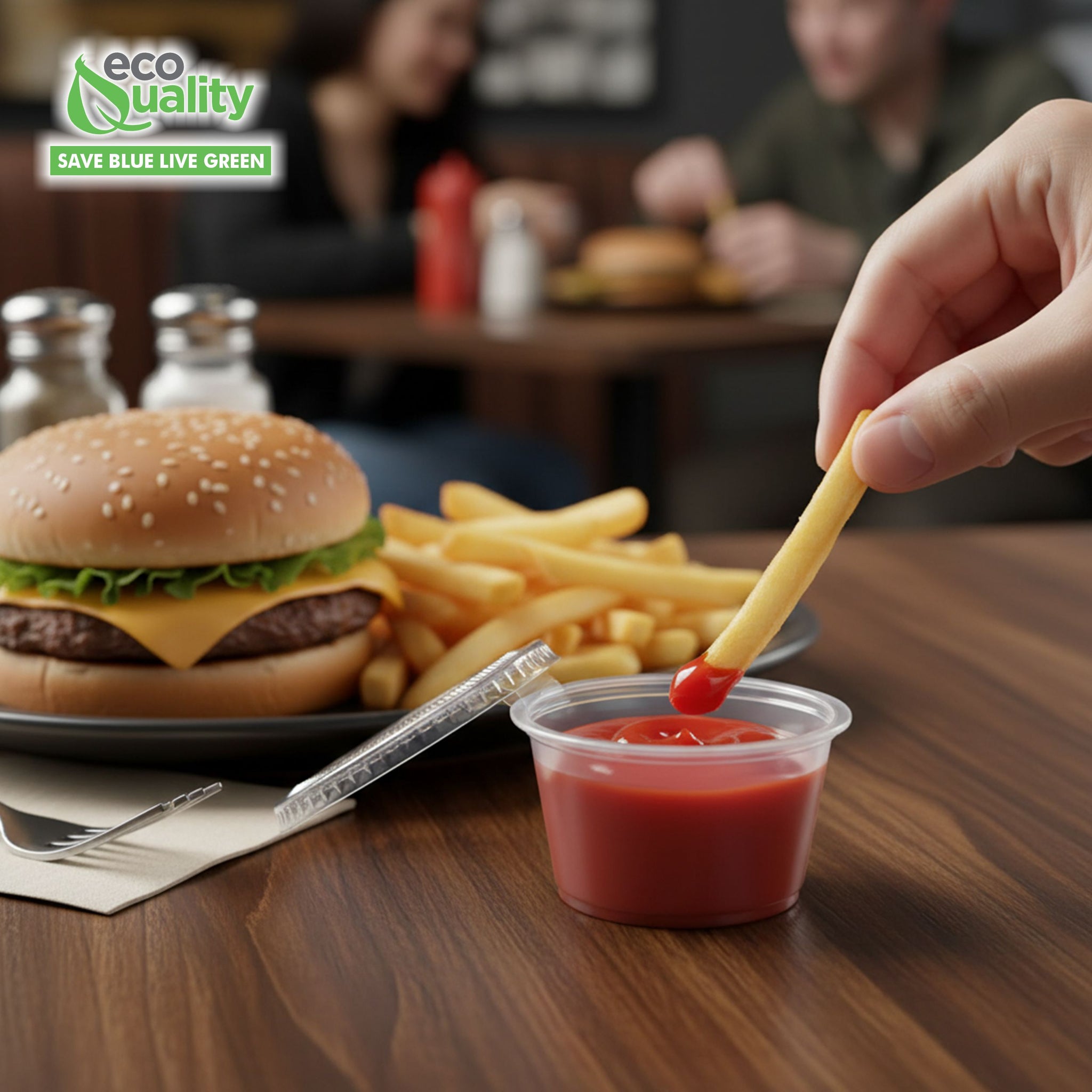 This cup is the perfect choice for providing customers with everything from ketchup, food samples, cosmetics, on the go. Now with secure lid, its stackable for easy storing and transport. This cup is made to help control portion sizes of your condiments, minimizing waste and saving on costs. It is great for use in delis, restaurants, and cafes. Plus, its eco-friendly design will help your establishment reduce its carbon footprint while retaining the convenience of single-serve use.