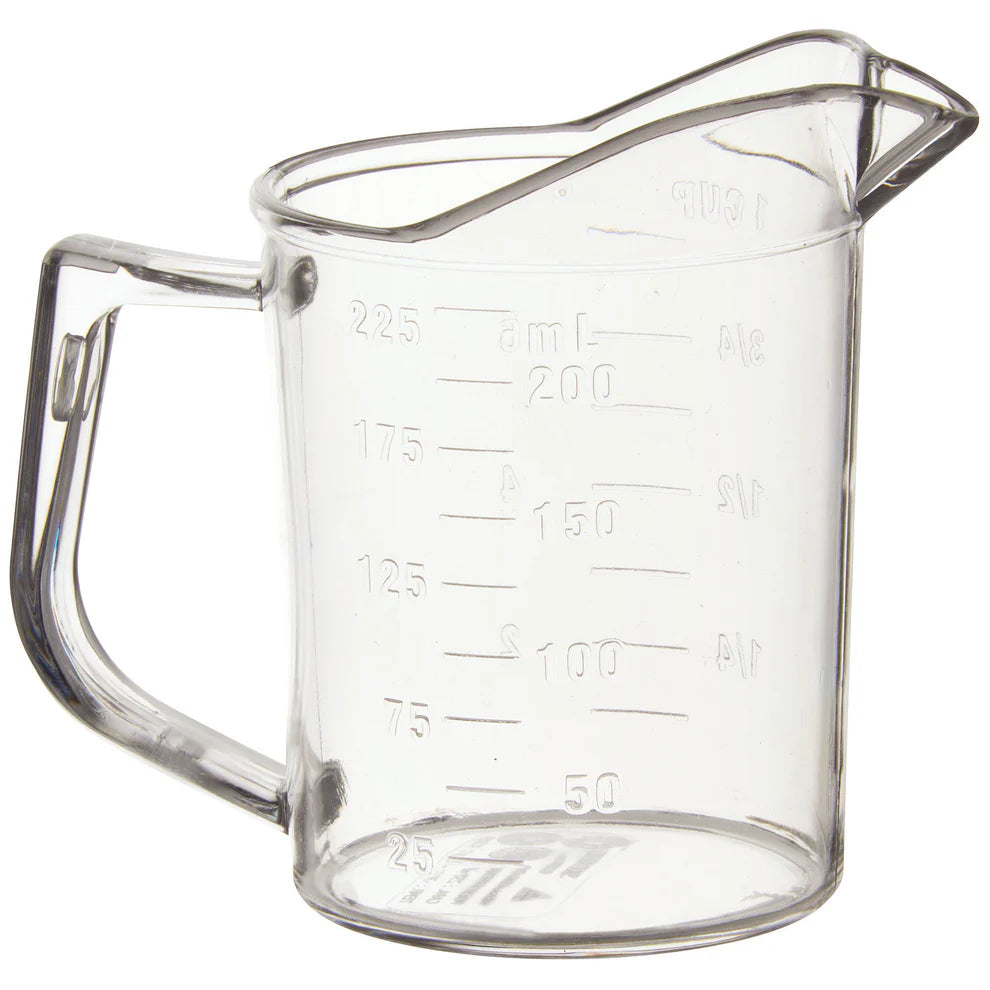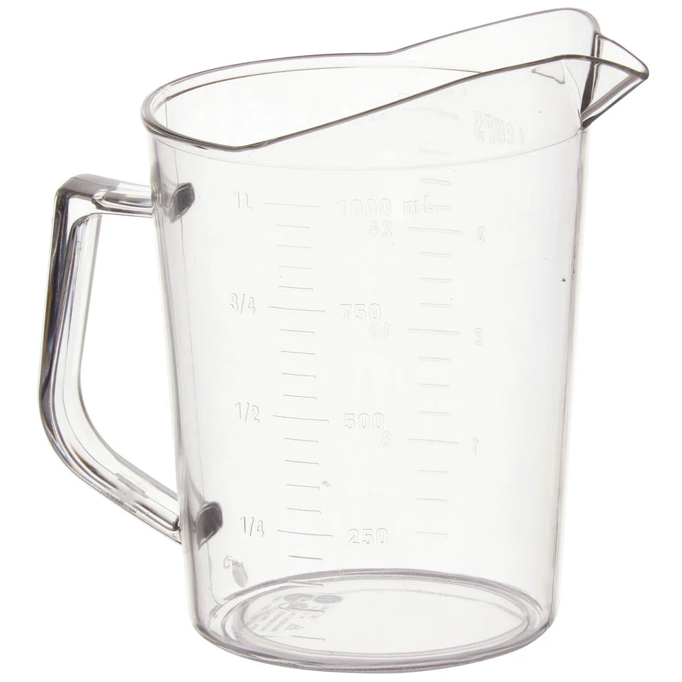 The Winco PMU series measuring cups, ranging from 1 quart to 1 pint, are crafted from durable polycarbonate material, ensuring long-lasting performance in both home and commercial kitchens. With raised graduation markings for easy measuring, these NSF-listed measuring cups provide precise and reliable measurements, ideal for any culinary environment. Whether you're baking, cooking, or preparing ingredients, these measuring cups are designed to stand up to frequent use. Their lightweight yet sturdy construction makes them a go-to tool for any kitchen.
