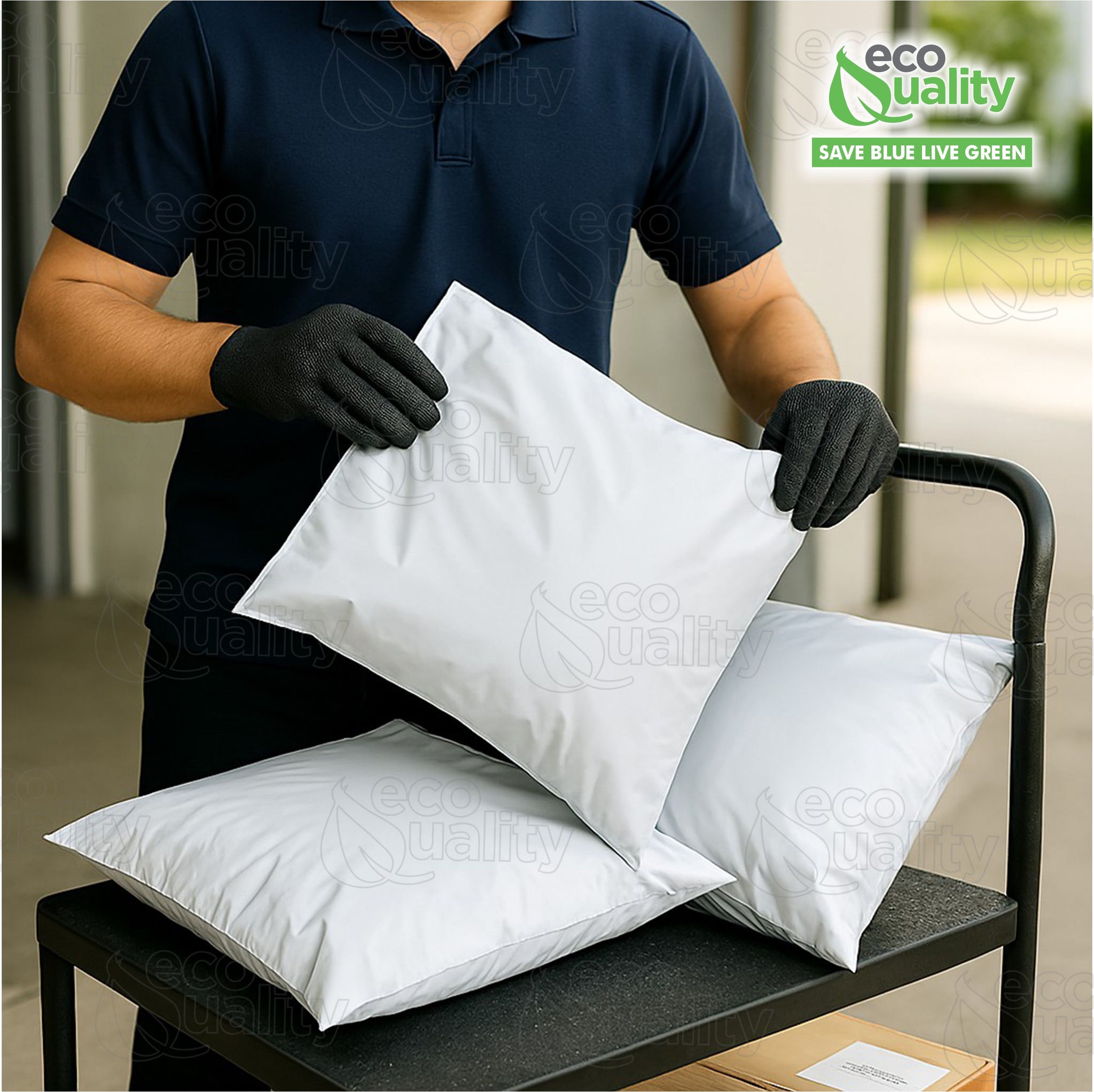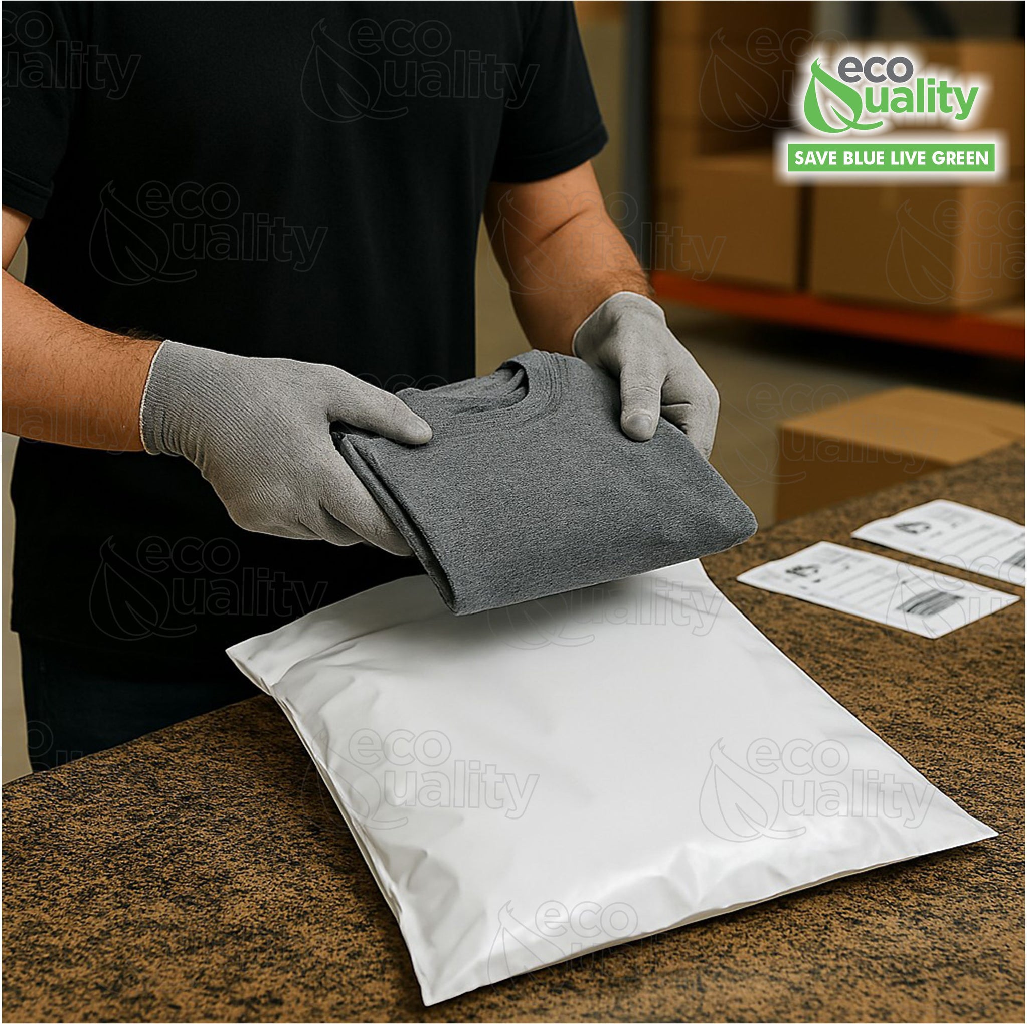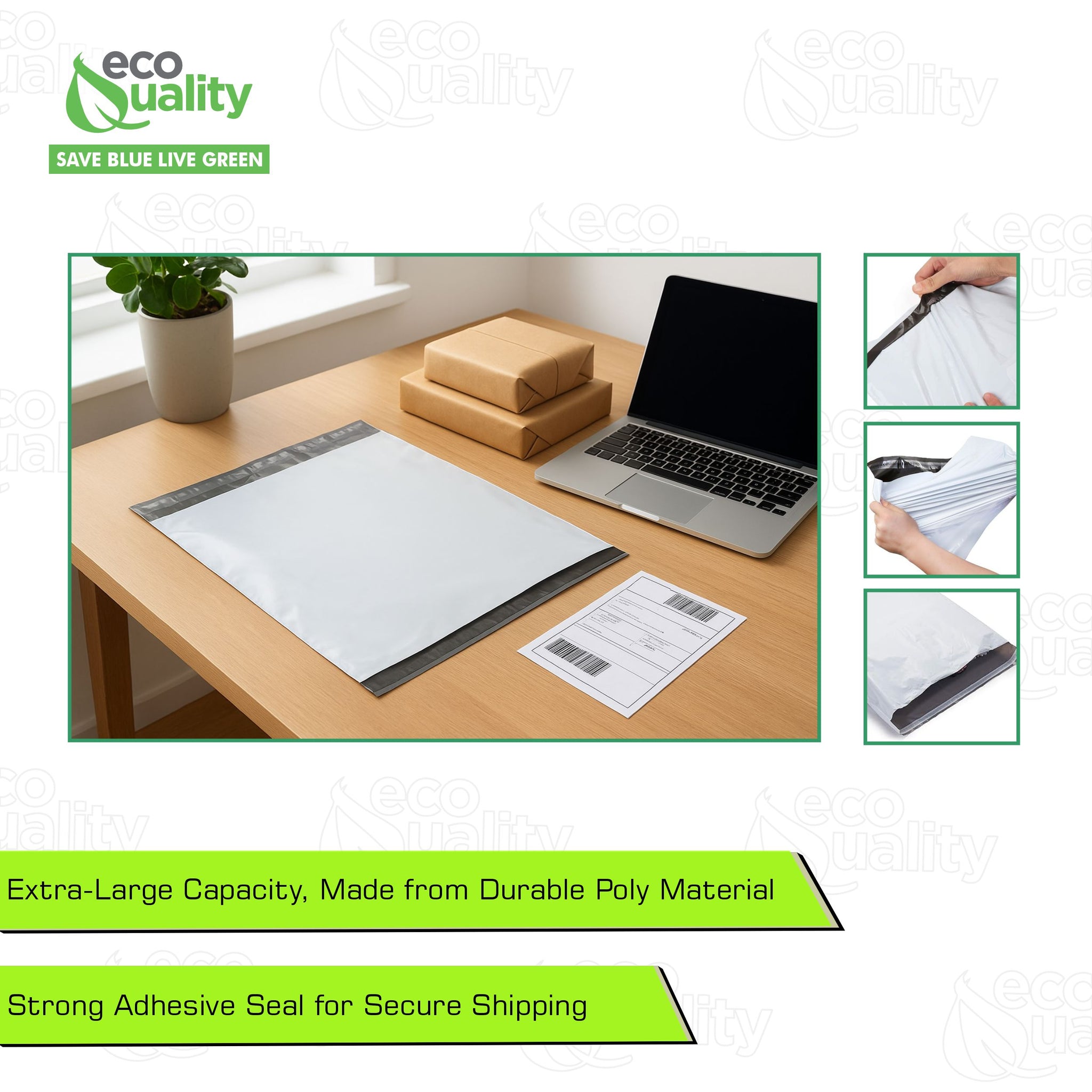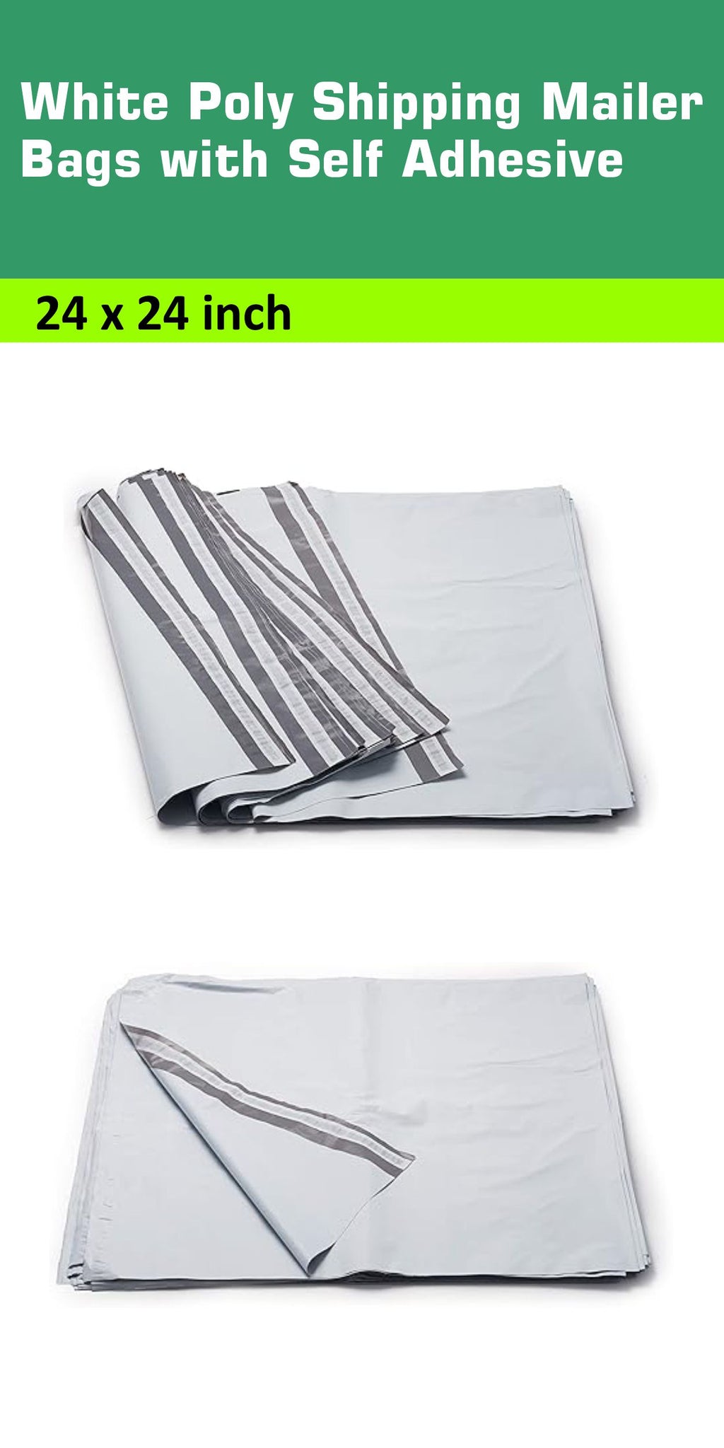 EcoQuality 24x24 White Poly Shipping Bags are self-sealing for easy packing with a tamper-evident, super secure closure. Pressure sensitive adhesive provides a high strength, durable closure that is water and dirt resistant.