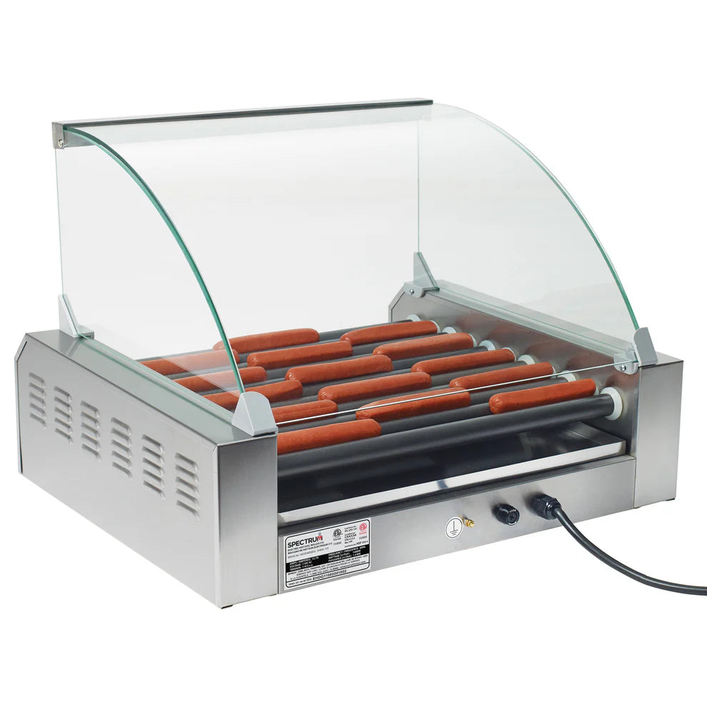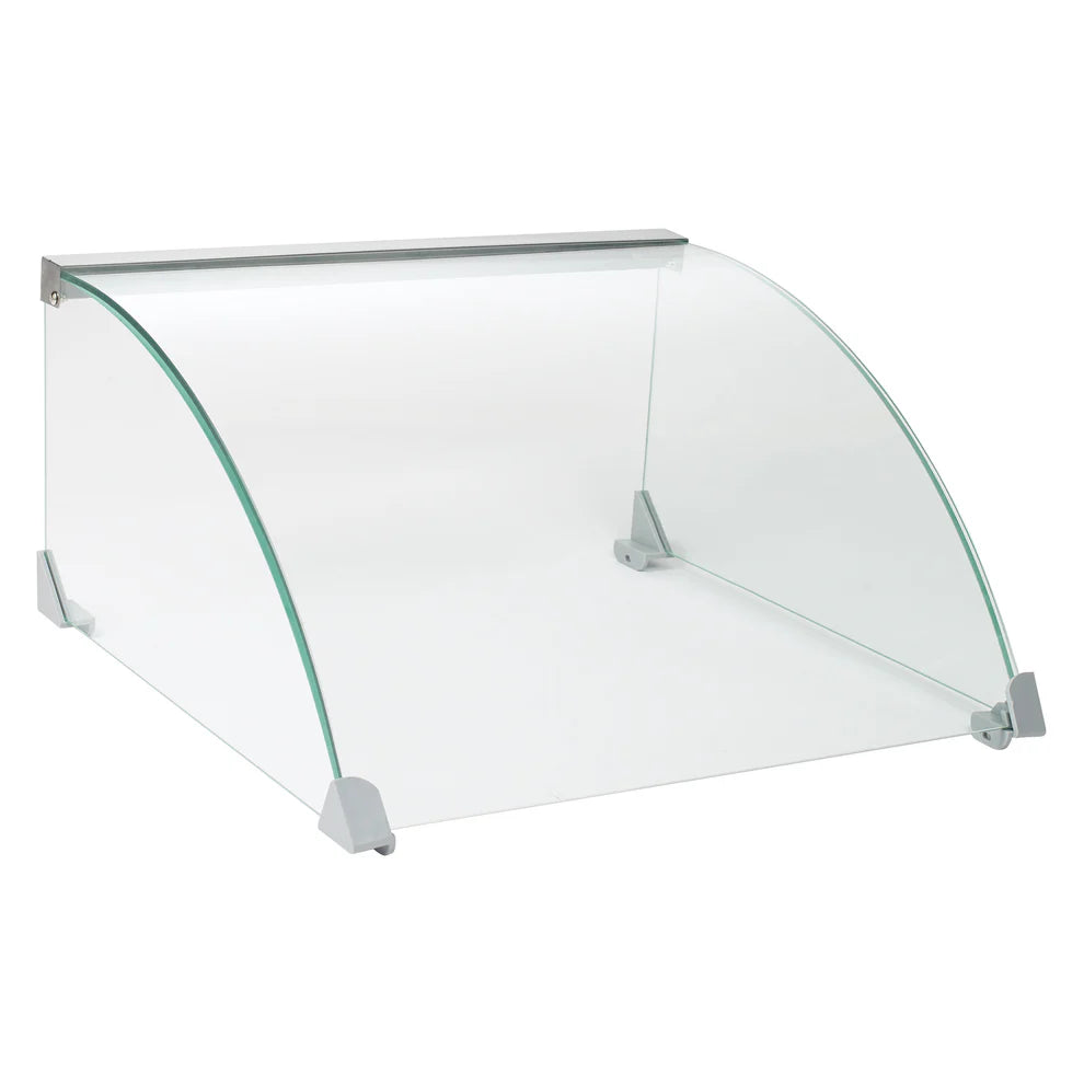 The EHDG-11SG-7SG Spectrum Glass Sneeze Guard is a stylish and functional addition to your food service setup. Designed to work seamlessly with EHDG-11R roller grill, this sneeze guard ensures that your hot dogs and other items are protected from airborne contaminants while offering an unobstructed view for customers. Made from durable materials, it combines heavy-duty construction with a modern, curved design that enhances both safety and visibility.