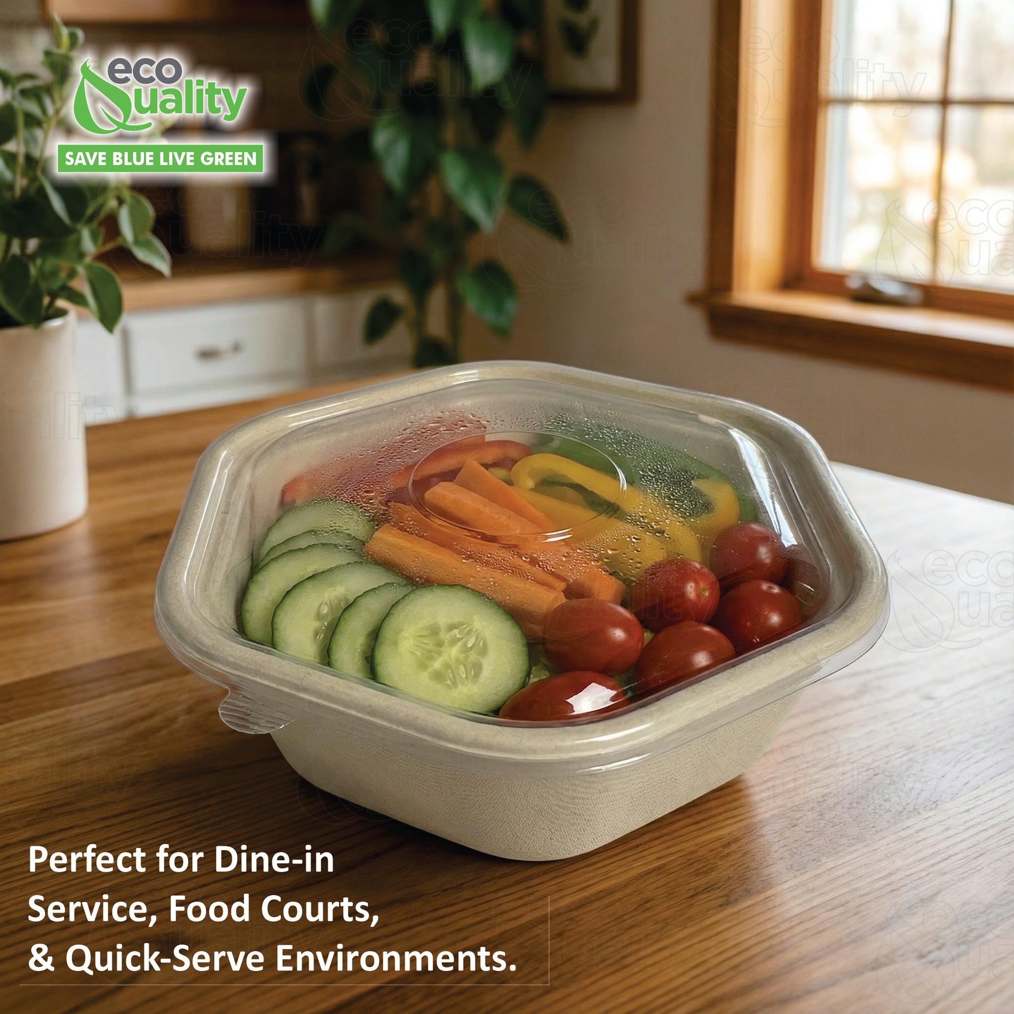 This hexagon compostable bowl is designed for serving hot and cold food. Designed for catering and restaurants. Sturdy and disposable. Made of sugar fiber for added leak resistance, it is great for meal prep, sharing snacks, and more.