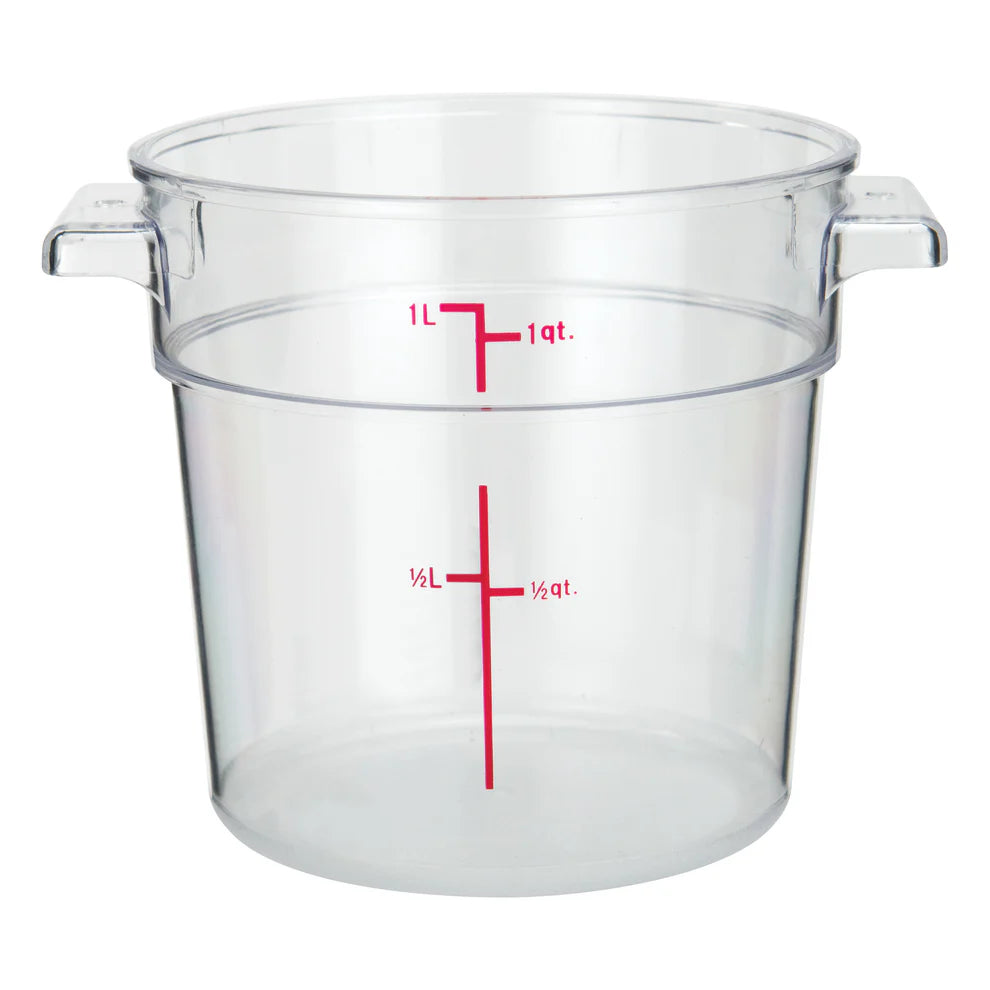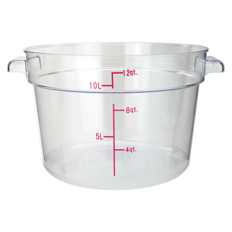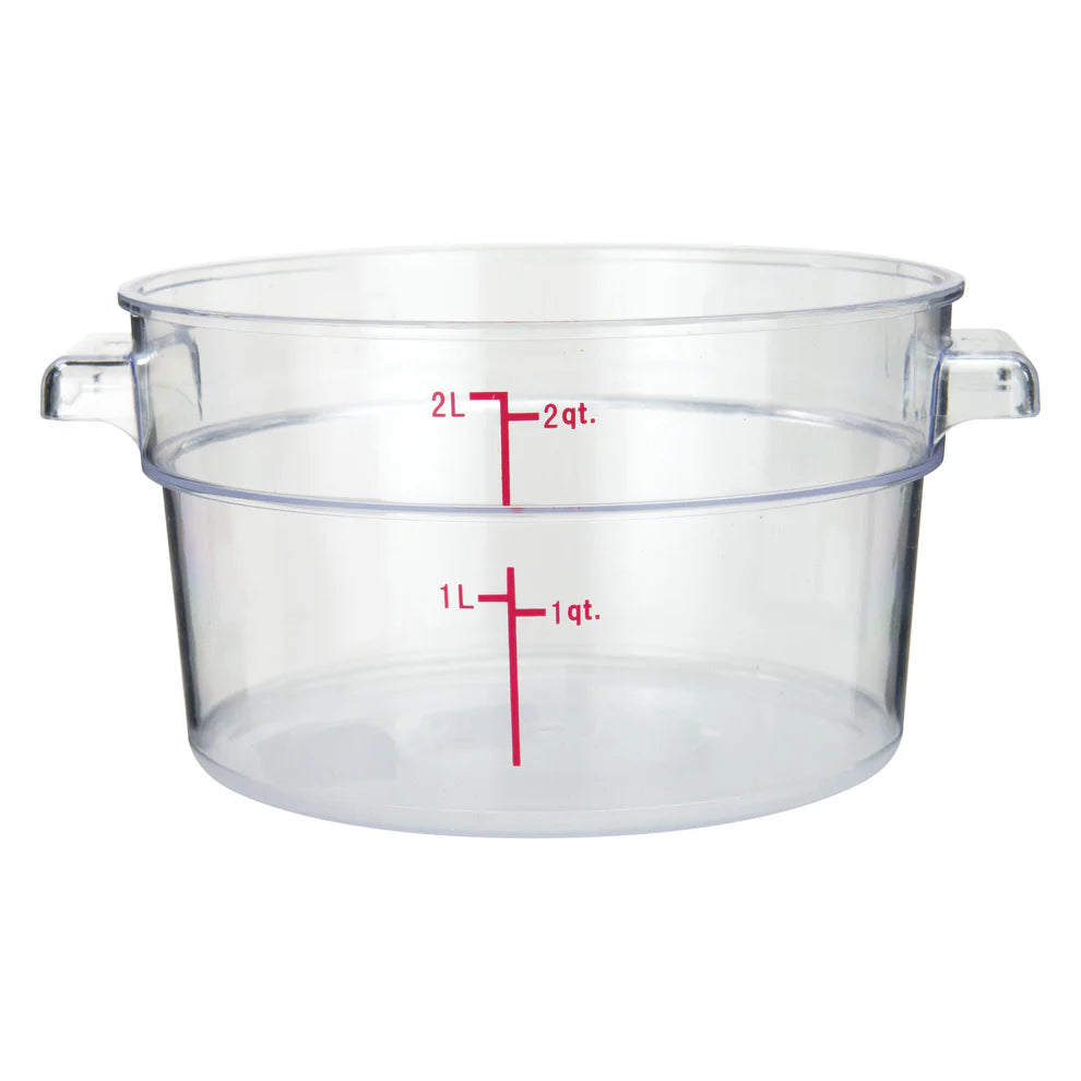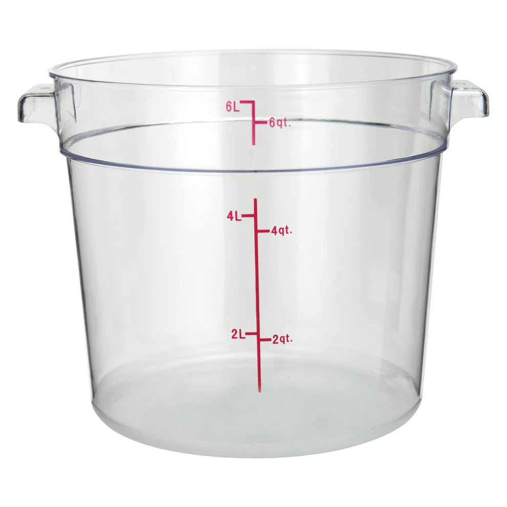 The Winco PCRC-1 to PCRC-8 Clear PC Round Storage Container is designed to meet the rigorous demands of commercial kitchens and food service environments. Perfect for both raw and prepared foods, this versatile container is a staple for efficient food storage and transport. Available in a range of sizes from 1 quart to 22 quarts, it caters to various needs, ensuring your food remains fresh and organized.