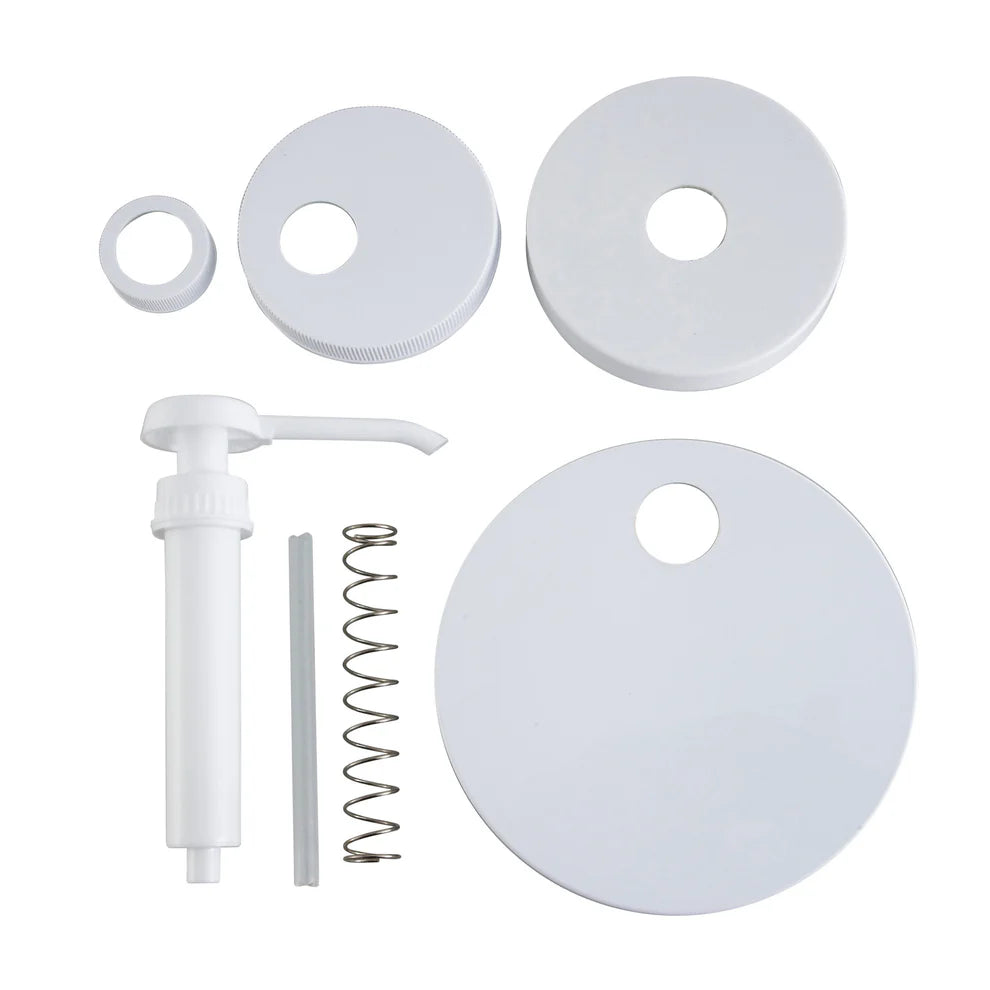 Introducing the Winco PKT-6 5 Lids Pump Kit, a versatile solution for dispensing various condiments and sauces in restaurant kitchens, buffet stations, and catering services. This kit comes equipped with a 9" standard-size pump and five different lid sizes to accommodate a variety of containers. The Winco PKT-6 Pump Kit offers reliability, versatility, and convenience, making it an essential tool for any food service establishment.