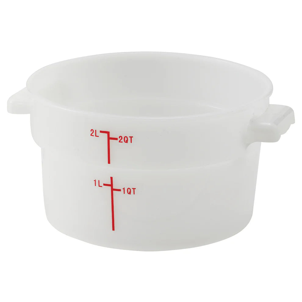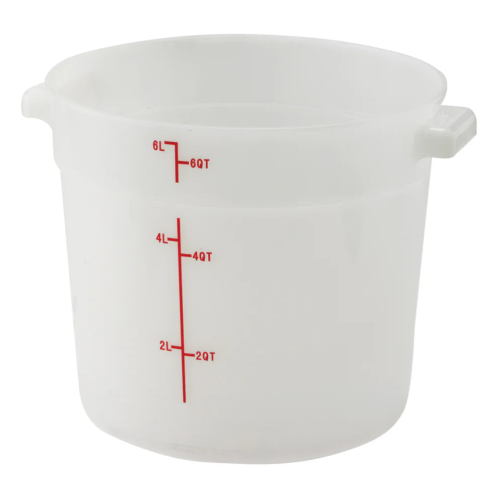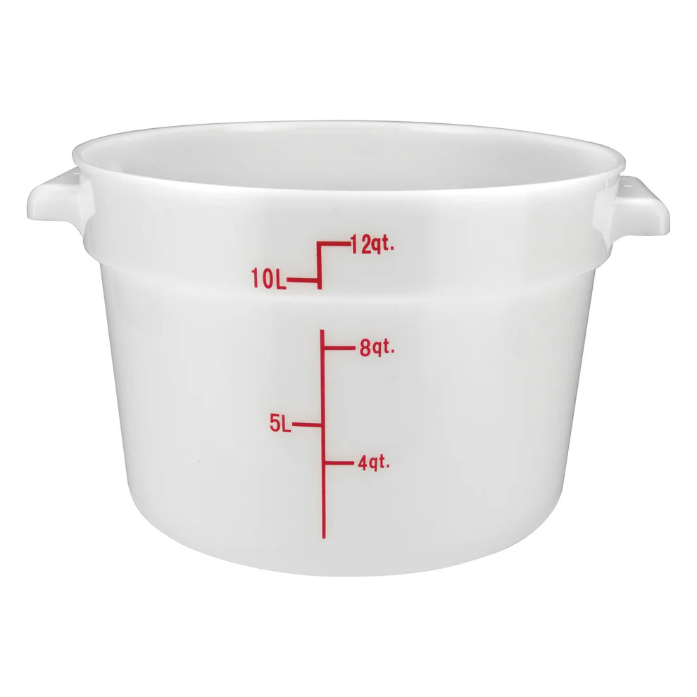 The Winco PPRC-12W to 8W round storage containers are versatile and durable solutions for both raw and prepared food storage, perfect for use in busy commercial kitchens and restaurants. These containers are made of high-quality polypropylene (PP), ensuring reliability in food service environments. Available in capacities ranging from 1 quart to 22 quarts, they are designed to meet various food storage needs. With their smooth, rounded interior and precise measurement markings, these containers are essential tools for efficient and safe food handling.
