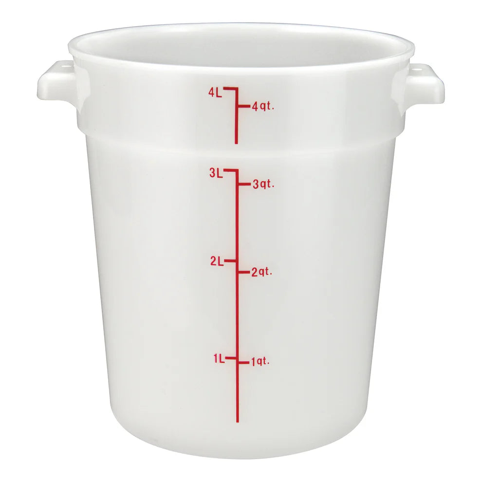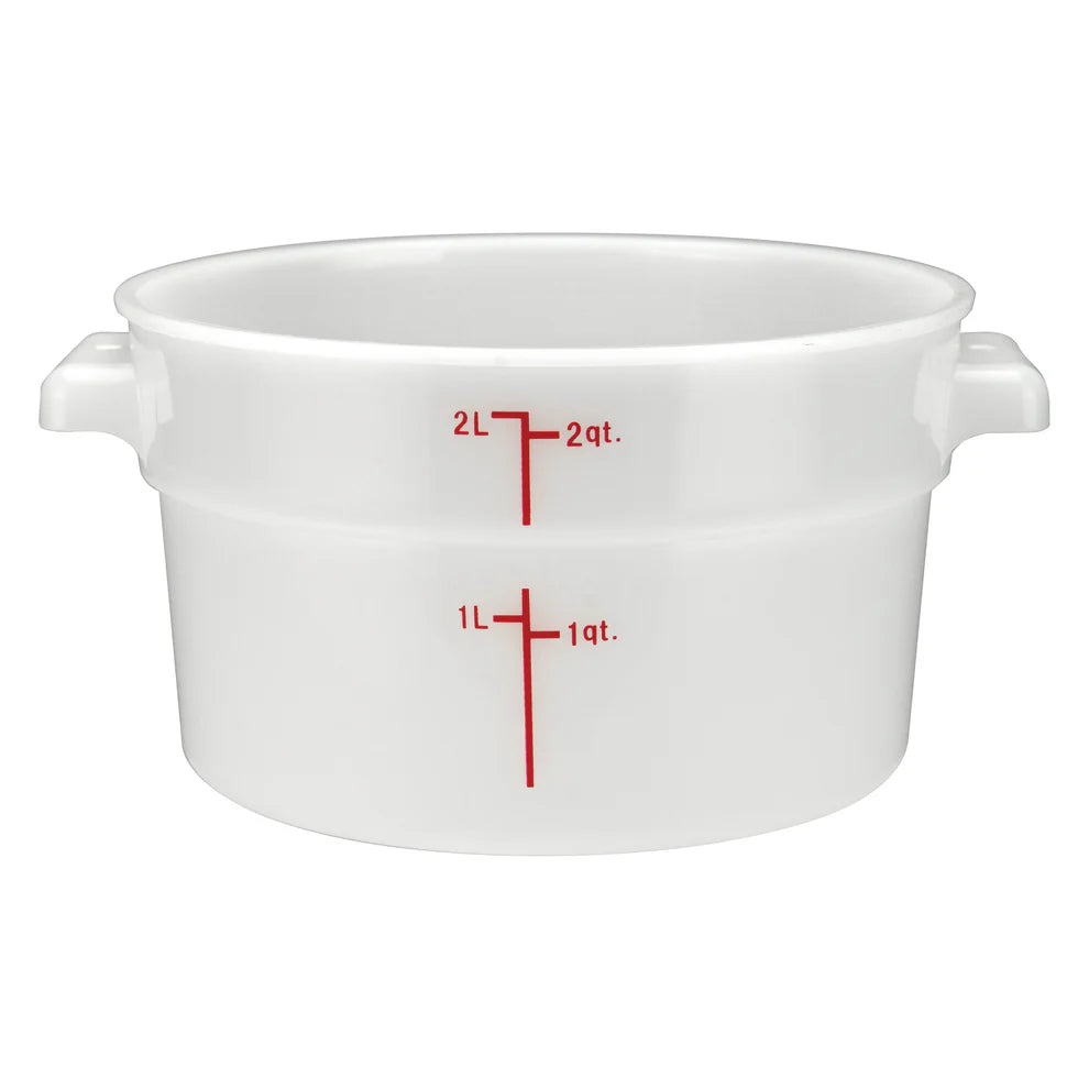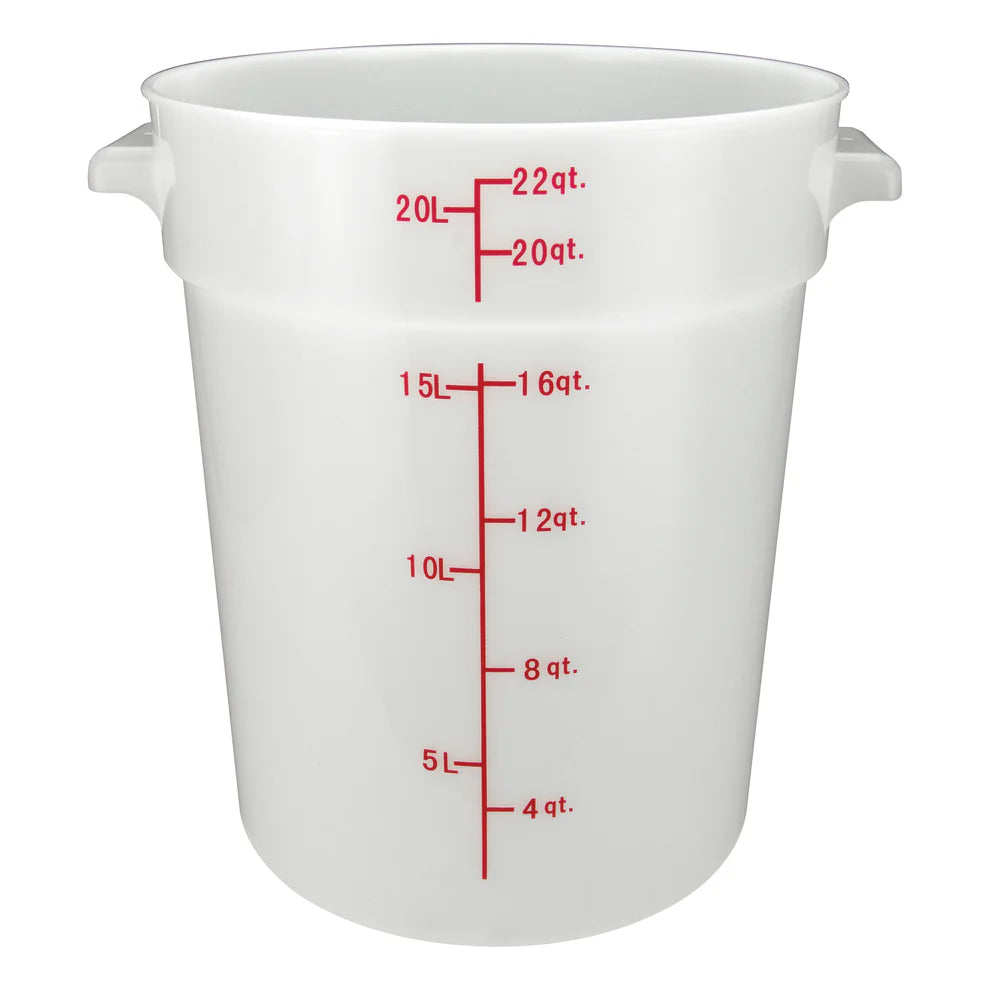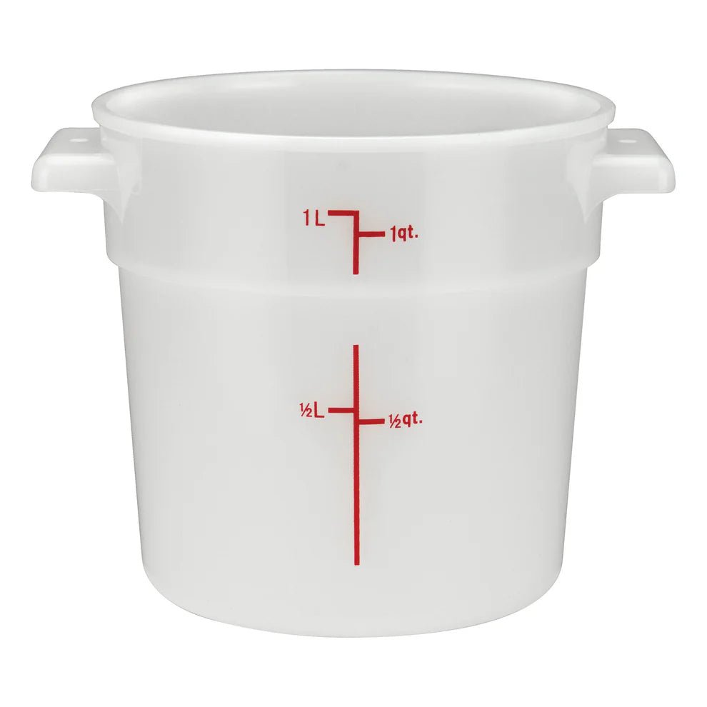 The Winco PPRC-12W to 8W round storage containers are versatile and durable solutions for both raw and prepared food storage, perfect for use in busy commercial kitchens and restaurants. These containers are made of high-quality polypropylene (PP), ensuring reliability in food service environments. Available in capacities ranging from 1 quart to 22 quarts, they are designed to meet various food storage needs. With their smooth, rounded interior and precise measurement markings, these containers are essential tools for efficient and safe food handling.