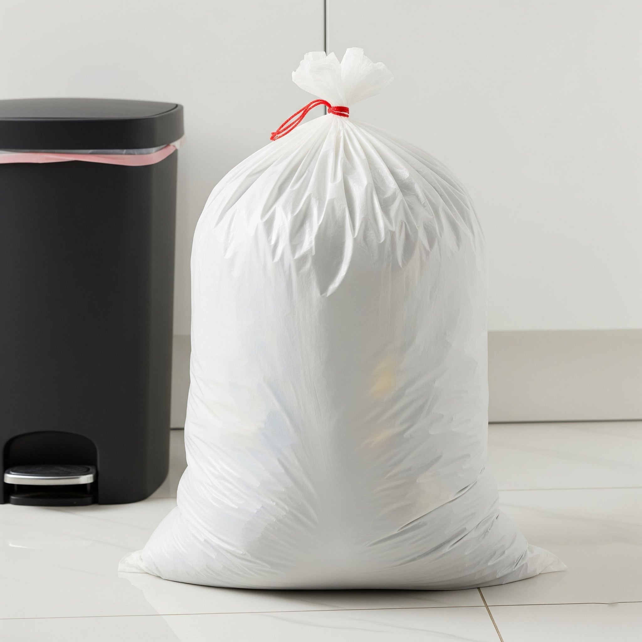 WHITE DESIGN: Tear-resistant, leak-proof, perforated, compactor friendly. Fits small to medium cans