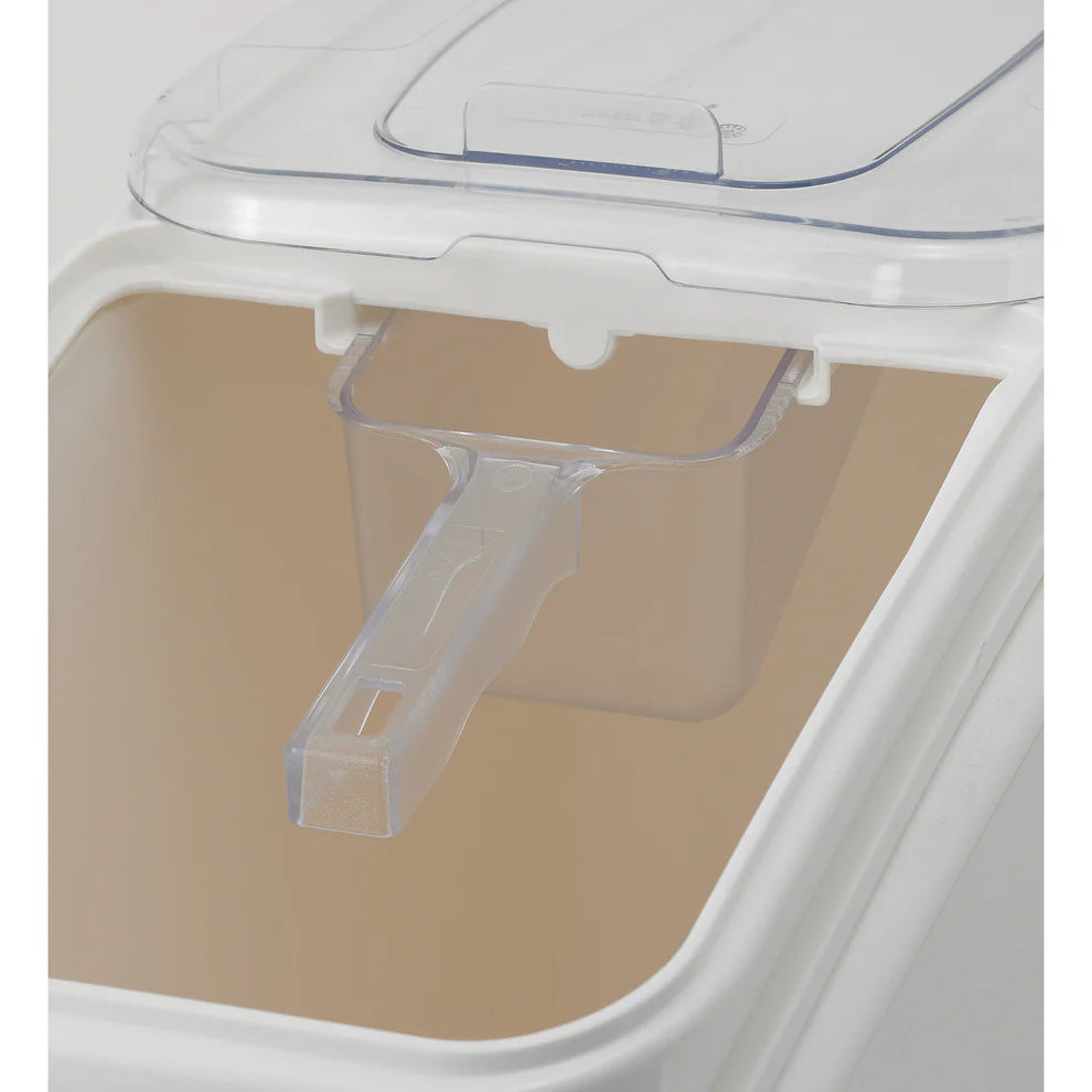 - The bins come with a scoop that is conveniently stored in the built-in holder, making it easy to measure and retrieve ingredients.