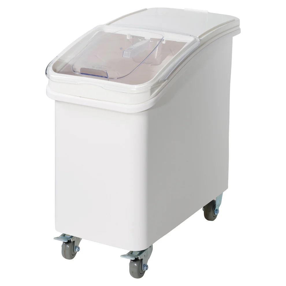 The Winco IB-21 and IB-27 Ingredient Bins are designed for optimal bulk storage and convenience in the kitchen. Available in 21-gallon and 27-gallon capacities, these bins are perfect for holding large quantities of ingredients while maintaining ease of access and mobility. Their space-efficient design allows them to fit neatly under counters, maximizing your kitchen's storage capabilities. Crafted with functionality and hygiene in mind, these bins come with a range of advanced features to streamline your kitchen operations.