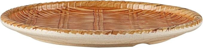 This round bamboo grove plate features a rich wooden brown woven design that delivers a natural upscale look ideal for food presentation. Crafted with a sturdy construction and smooth serving surface it is well suited for appetizers shared dishes and buffet style displays. The round shape enhances visual appeal while the bamboo inspired finish complements restaurants catering setups and entertaining environments that require durable and attractive serveware.