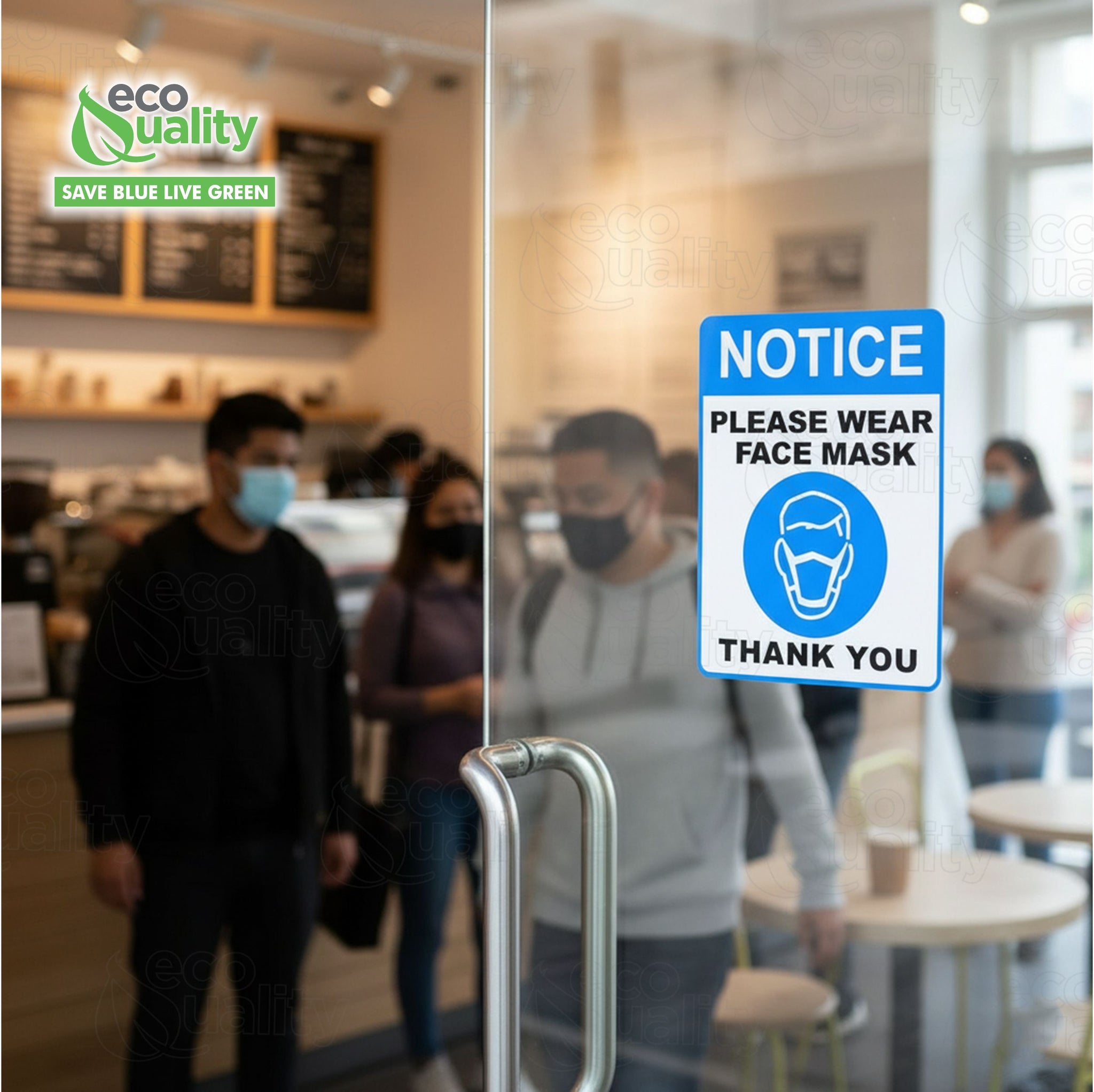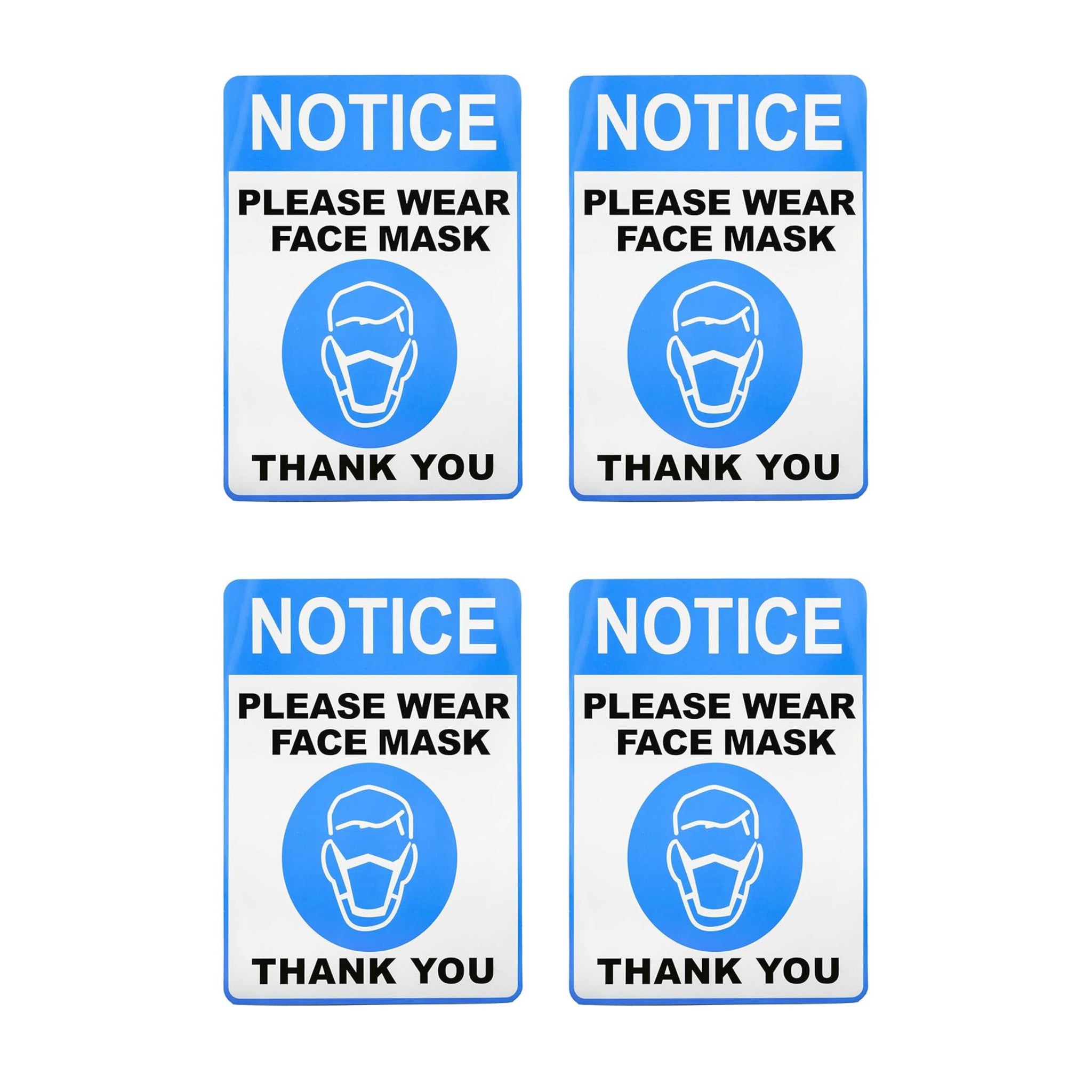 - SIZE: 10 x 7 Inches in size, bright blue colors, all these attract people’ s attention faster and to remind them to wear face masks; wear a mask sign widely used in public places like grocery stores, supermarkets, gyms, restaurant, pharmacy, offices, school, banks, hospitals, church, cars, Taxi and more