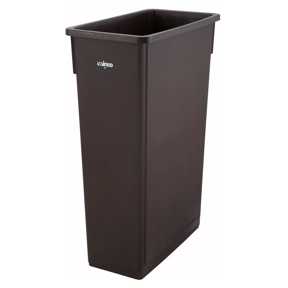 The Winco PTC-23B-23SG 23-gallon slender trash can is an excellent choice for maintaining cleanliness and organization in commercial settings with limited space. Designed with durability and practicality in mind, this trash can is built to withstand the demands of high-traffic environments while offering a sleek and space-efficient profile. Available in various colors, it provides flexibility to fit seamlessly into any setting, from kitchens and offices to restrooms and hallways.