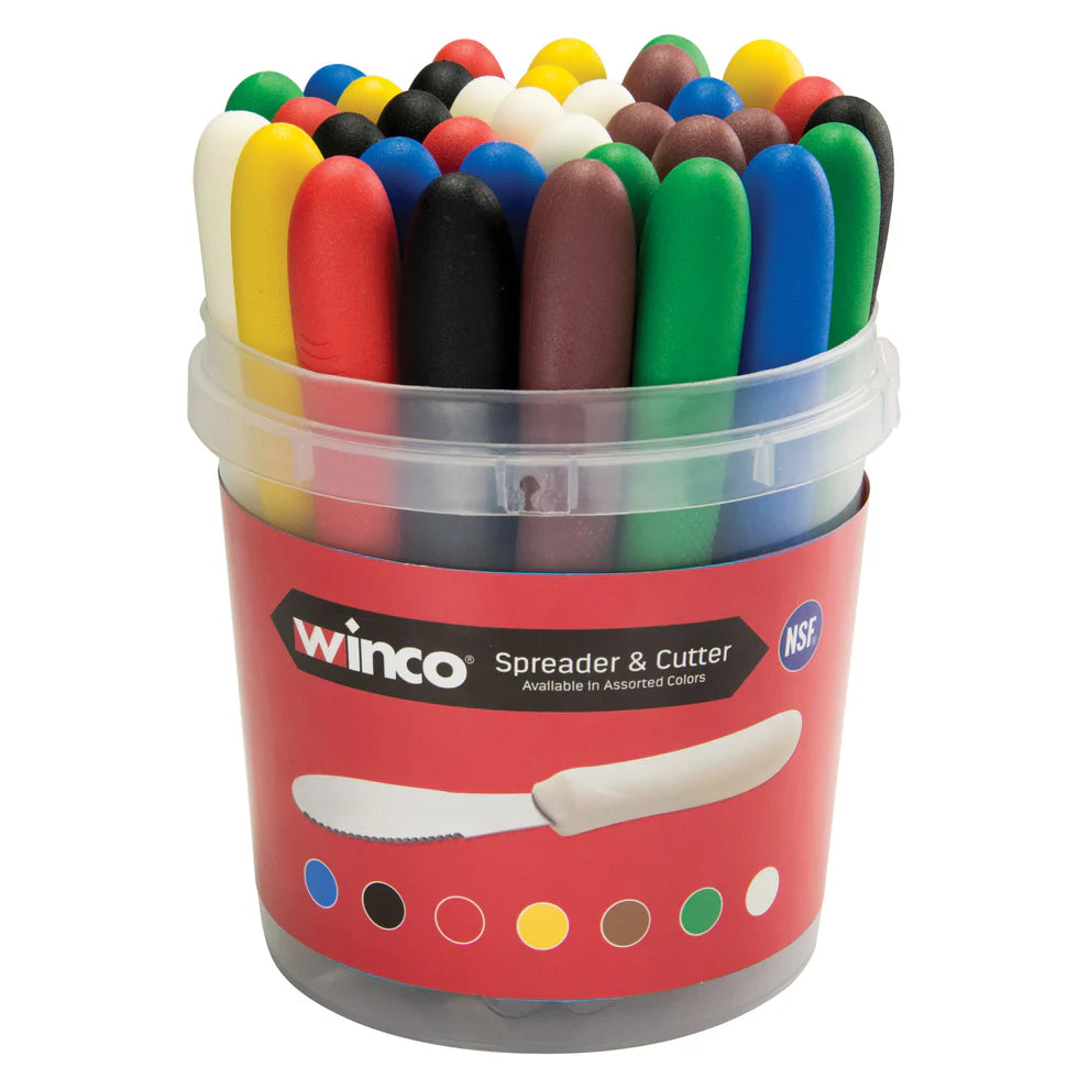 The Winco TWP-3135 Butter Spreader offers a practical solution for all your spreading needs in the kitchen, now available in a convenient bulk pack. Ideal for homes, restaurants, or catering events, this set comes packed in a display bucket designed for easy access and impulse purchases. Each spreader is crafted to provide efficiency and comfort, making them perfect for butter, cream cheese, and other spreads.