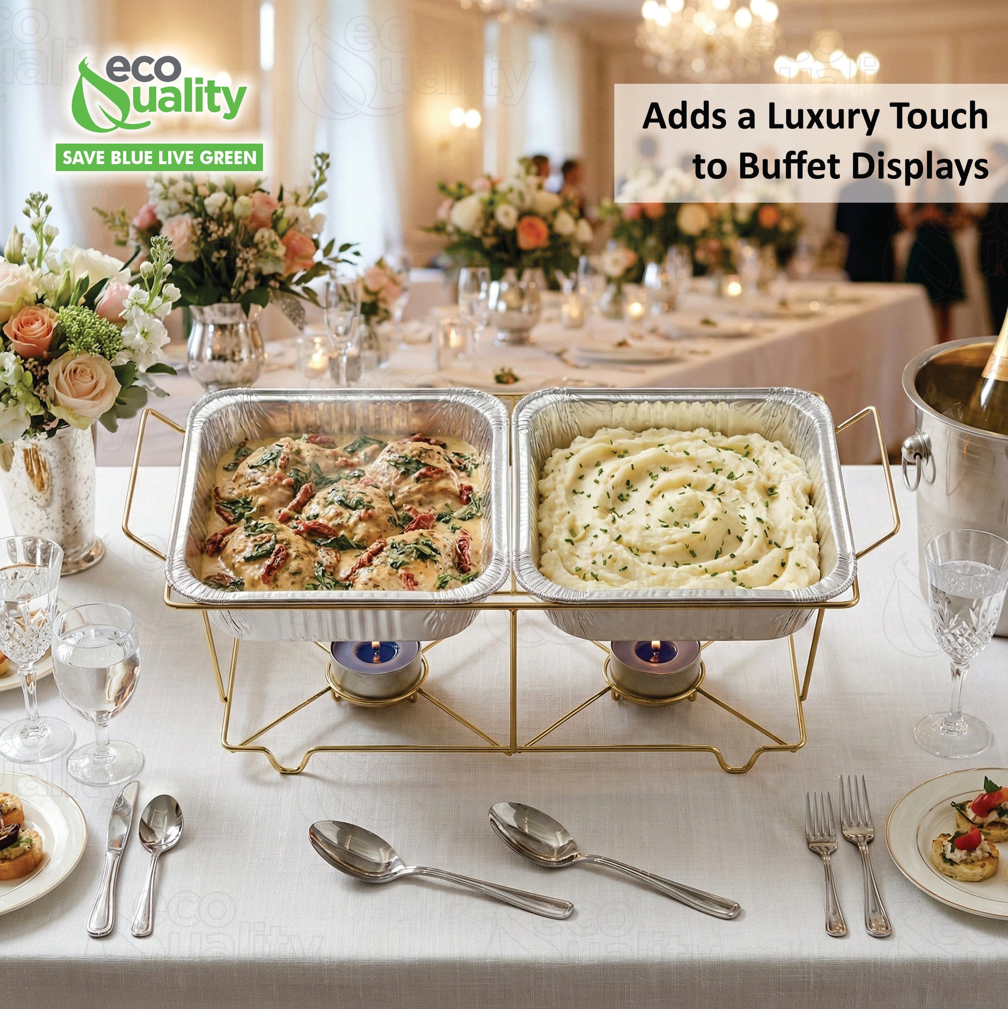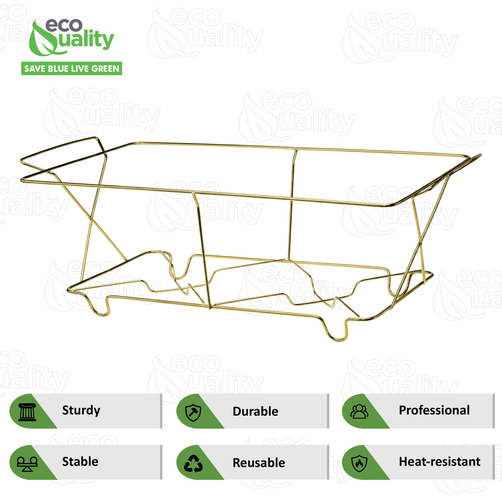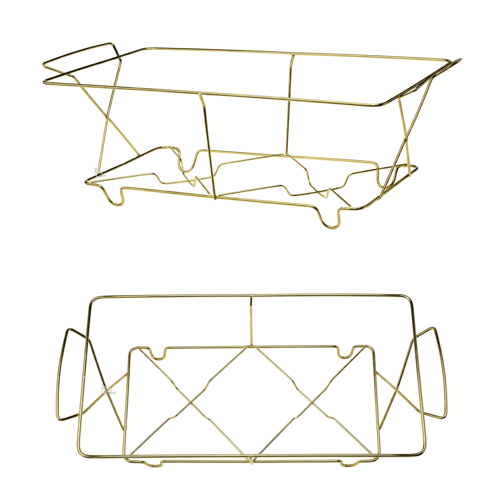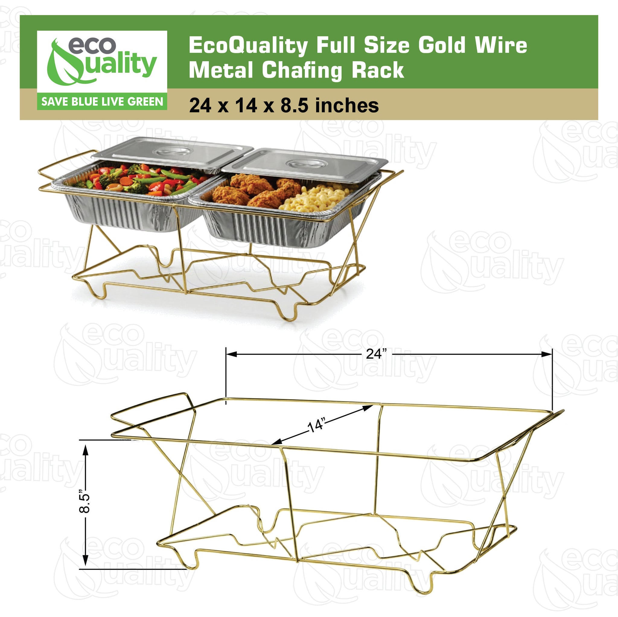 Elevate your catering setup with this Wire Chafing Rack in elegant black and gold. Perfect for buffets, events, and large gatherings, this rack is designed to securely hold full-size or half-size chafing dishes, keeping your food warm and ready to serve. The combination of black and gold adds a touch of sophistication and modern style to any event, making it ideal for weddings, corporate functions, or upscale parties. Made from durable materials, this sturdy rack is lightweight, easy to assemble, and can be used both indoors and outdoors. It’s a must-have piece for any professional caterer or host looking to create a polished food display.