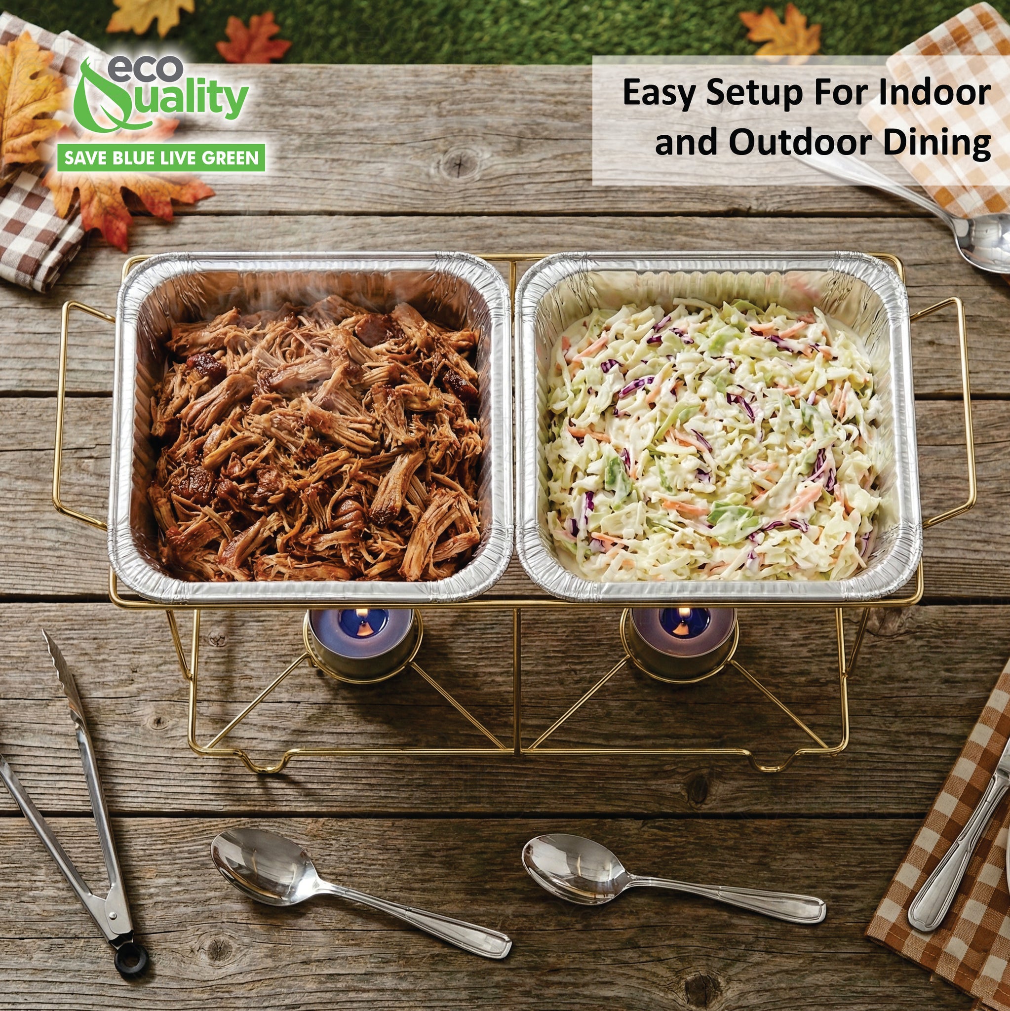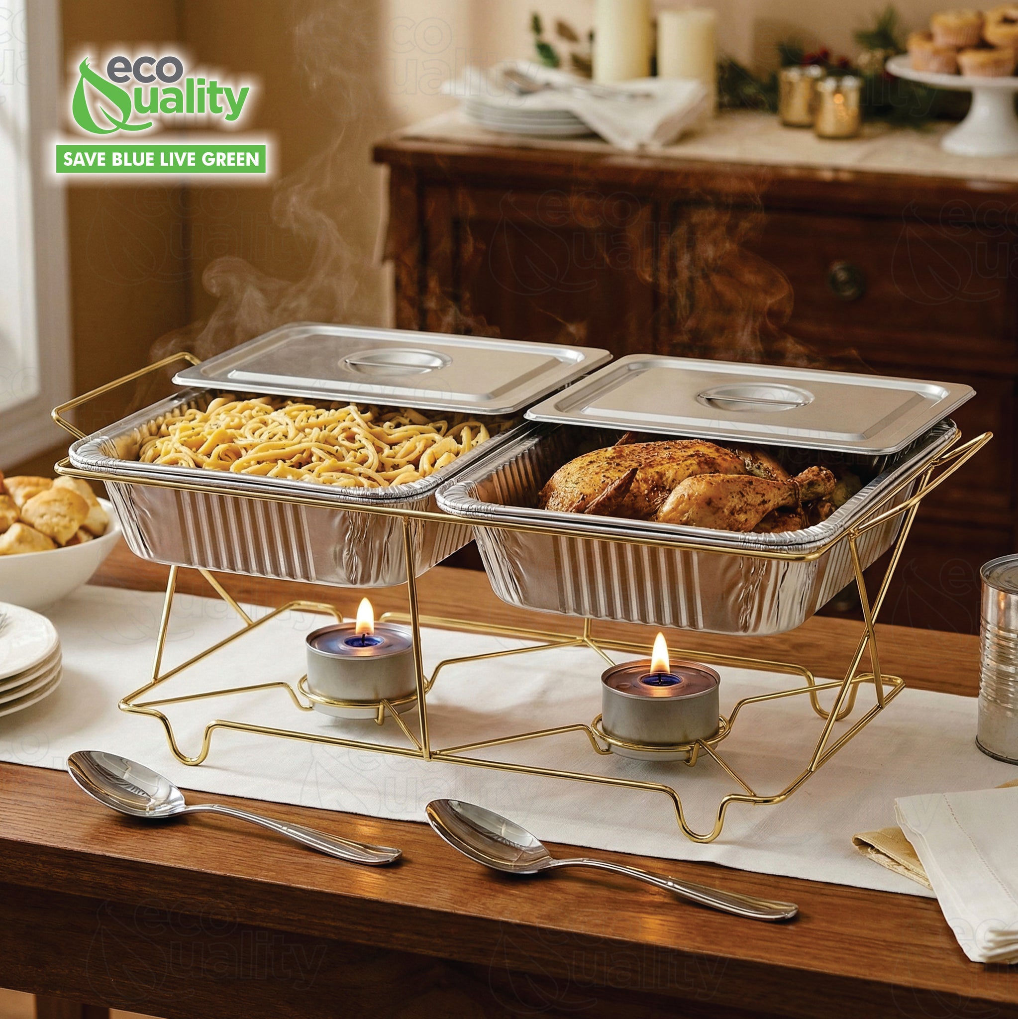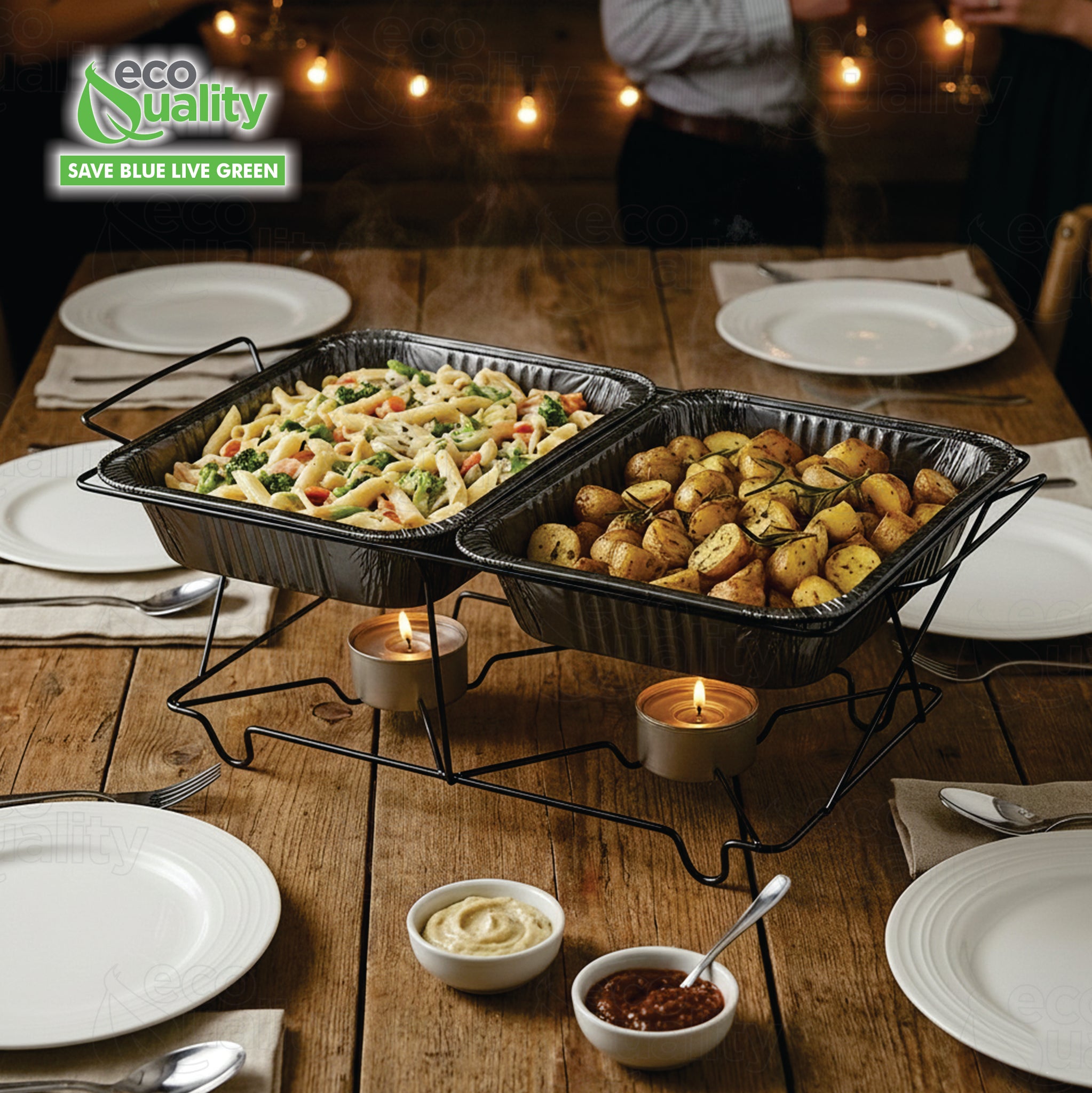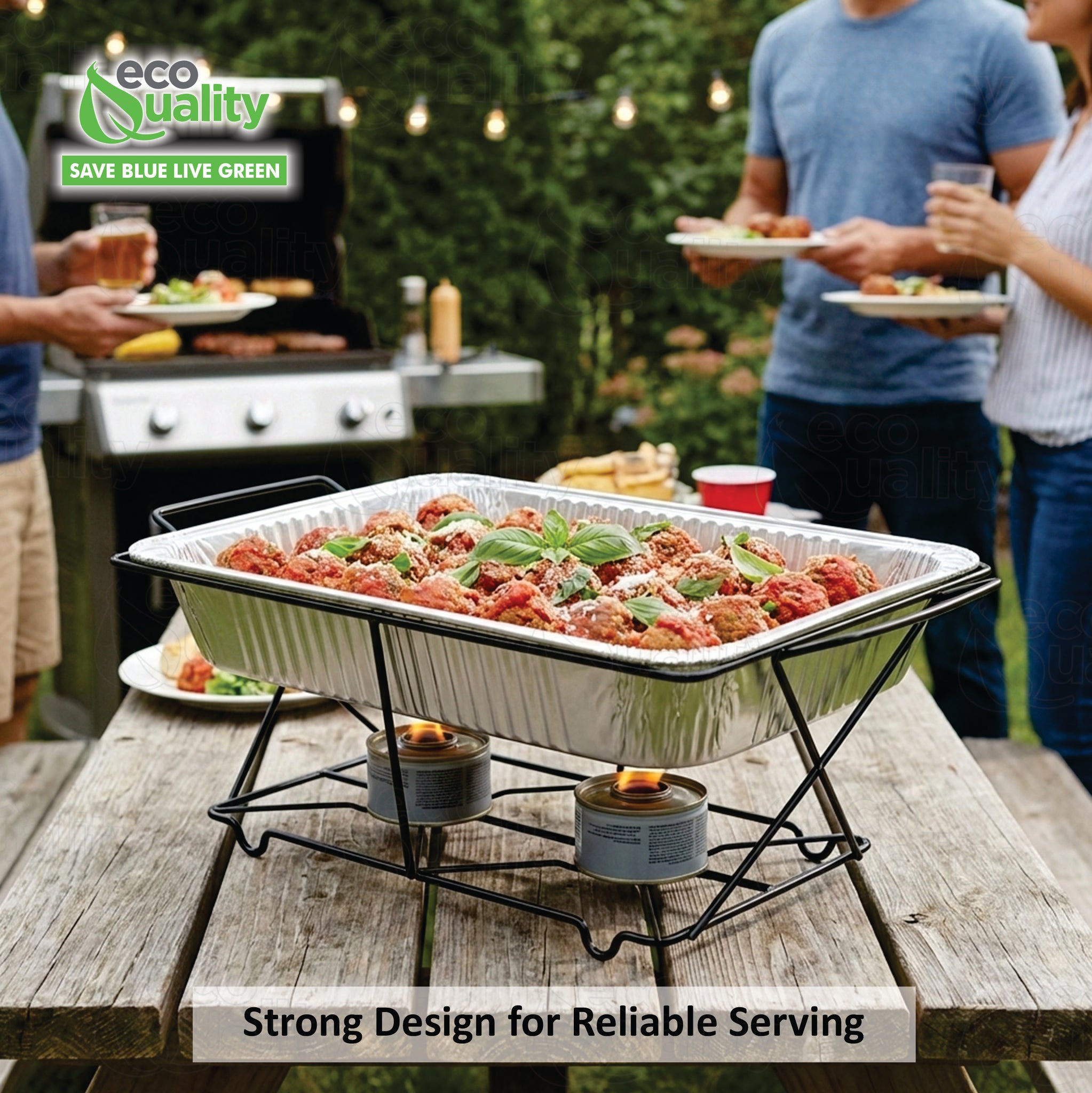 Elevate your catering setup with this Wire Chafing Rack in elegant black and gold. Perfect for buffets, events, and large gatherings, this rack is designed to securely hold full-size or half-size chafing dishes, keeping your food warm and ready to serve. The combination of black and gold adds a touch of sophistication and modern style to any event, making it ideal for weddings, corporate functions, or upscale parties. Made from durable materials, this sturdy rack is lightweight, easy to assemble, and can be used both indoors and outdoors. It’s a must-have piece for any professional caterer or host looking to create a polished food display.