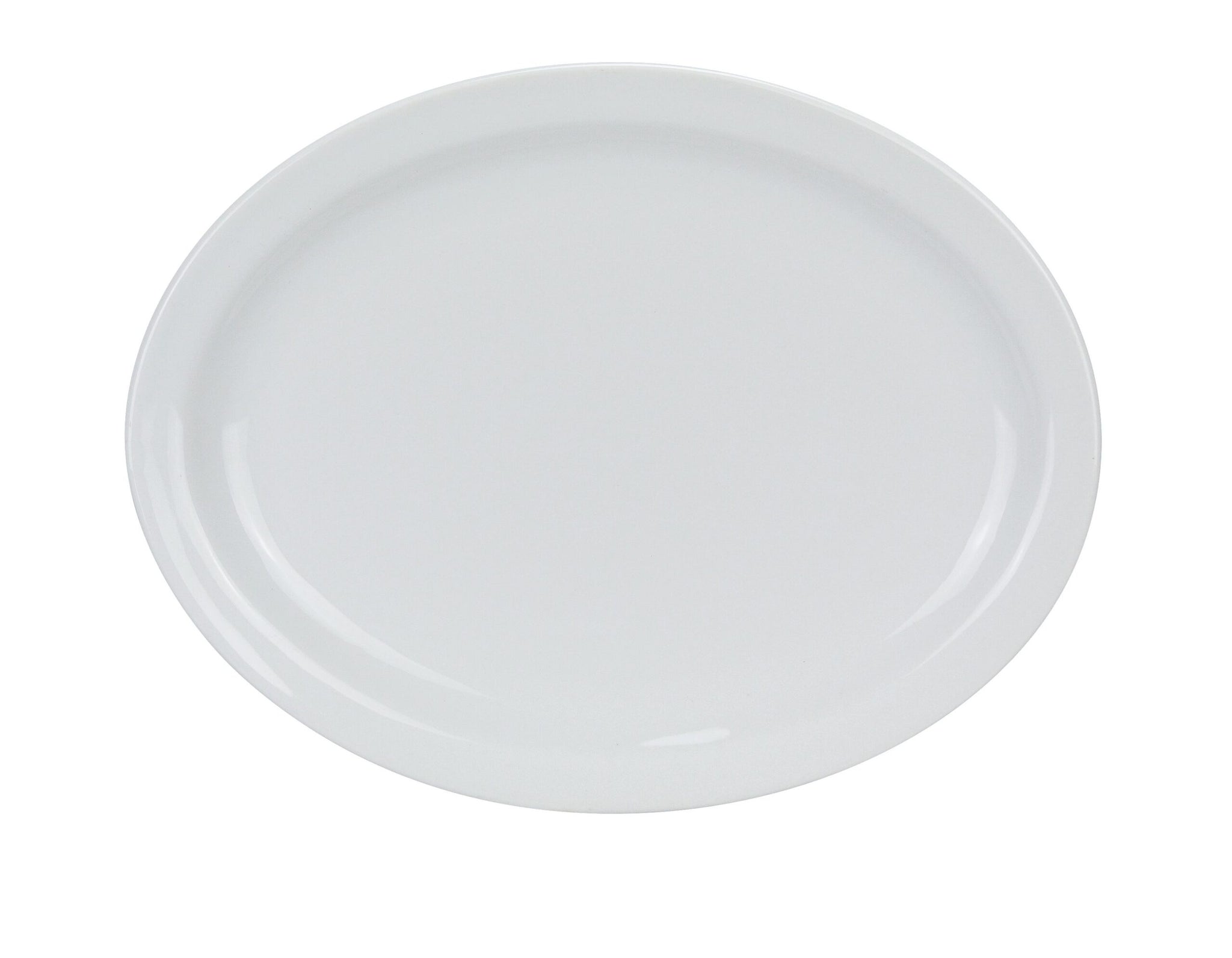 EcoQuality Narrow Rim Platter is a stylish and durable choice for any food-serving establishment. Crafted from high-quality porcelain with a sleek glaze finish, this platter offers excellent resistance to mechanical damage and temperature effects. Part of the elegant Mayor collection, its narrow rim design enhances presentation, making it perfect for serving vegetables, cold cuts, fresh greens, and appetizers. Ideal for fine-dining restaurants, catered events, and buffets, this platter seamlessly complements any table setting. Measuring 10 inches long by 8 inches wide. It is dishwasher, oven, and microwave safe, ensuring convenience for both personal and commercial use.