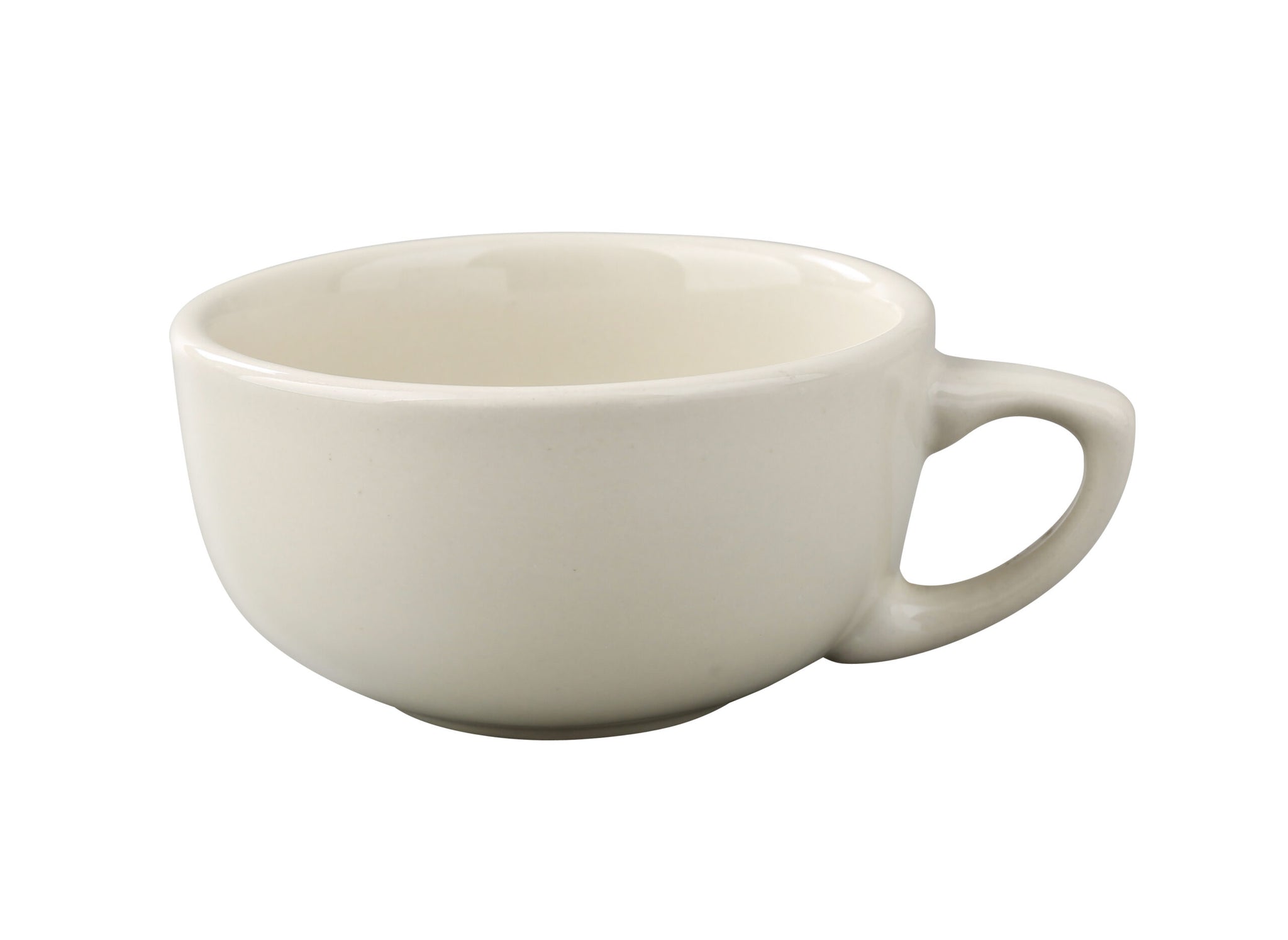 EcoQuality Cappuccino Cup RE-56 is an excellent addition to any café, restaurant, or hospitality setting. With a generous 14-ounce capacity and a wide 4.5-inch opening, this cup is perfect for serving cappuccinos, herbal teas, and both drip and foamed coffee. Its smooth, polished glaze and classic American white color provide a sleek and professional presentation, while its durable porcelain construction resists chipping and scratching. Pair it with a matching saucer for a complete coffee service experience.