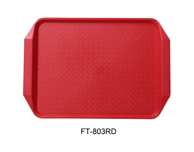 Serve meals with style and sustainability. The EcoQuality fast food tray features a convenient handle for easy transport and is crafted from eco-friendly materials that align with modern restaurant standards. The vibrant red finish adds visual appeal to your service while maintaining the durability and quality expected in busy food service environments. This tray measures 17 inches long by 12 inches wide. Perfect for cafeterias, quick-service restaurants, and catering operations seeking reliable, environmentally conscious dinnerware solutions.