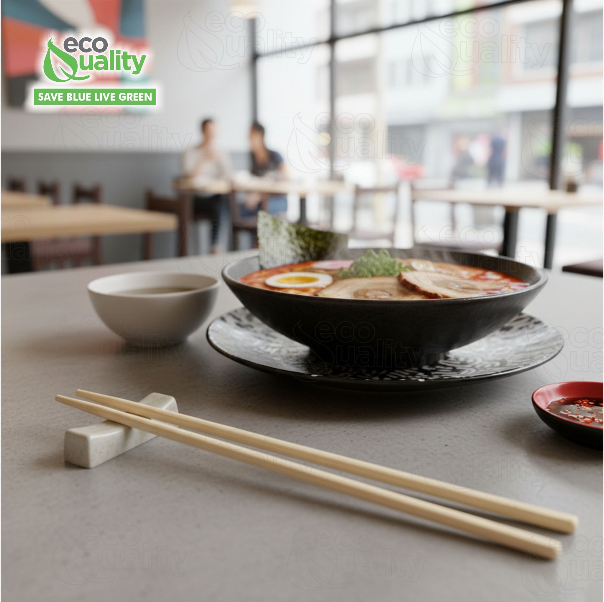 EcoQuality 9 Inch Premium Plastic Wrapped Disposable Bamboo Chopsticks come to your door in a attractive packaging. These chopsticks are twin style and disconnected at the top. They are separated preventing any splinters cuts or headaches