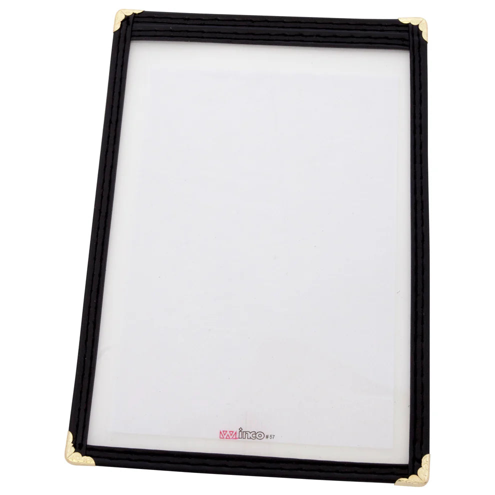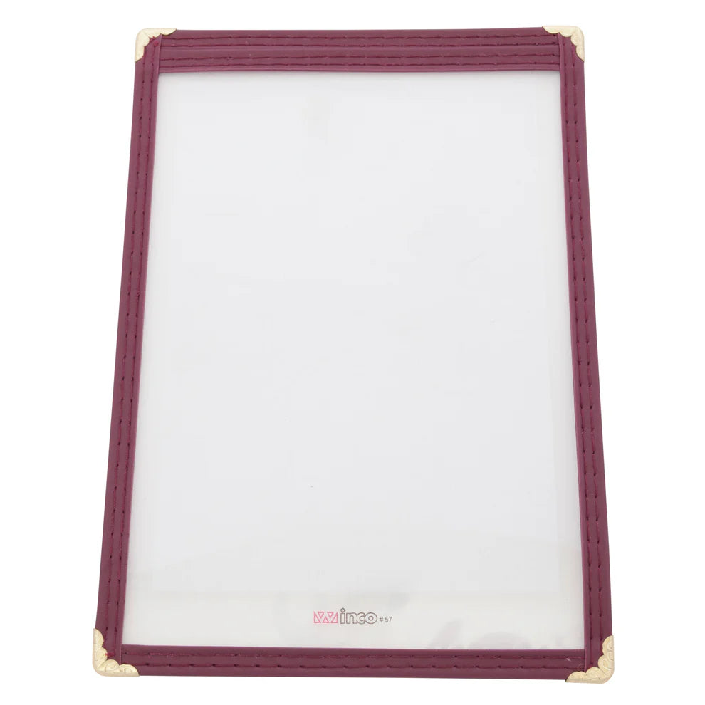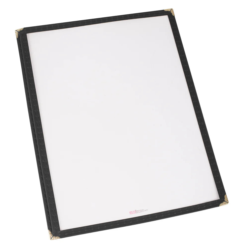 Winco® Single Menu Covers will improve how your menu items are presented. These covers, which come in a range of sizes and eye-catching hues like Black, Burgundy, Blue, Green, and Red, are ideal for buffet stations, restaurant kitchens, and catering services. The edges of all Winco® menu covers are double-stitched to withstand daily handling and wear and tear, as they are designed with durability in mind.